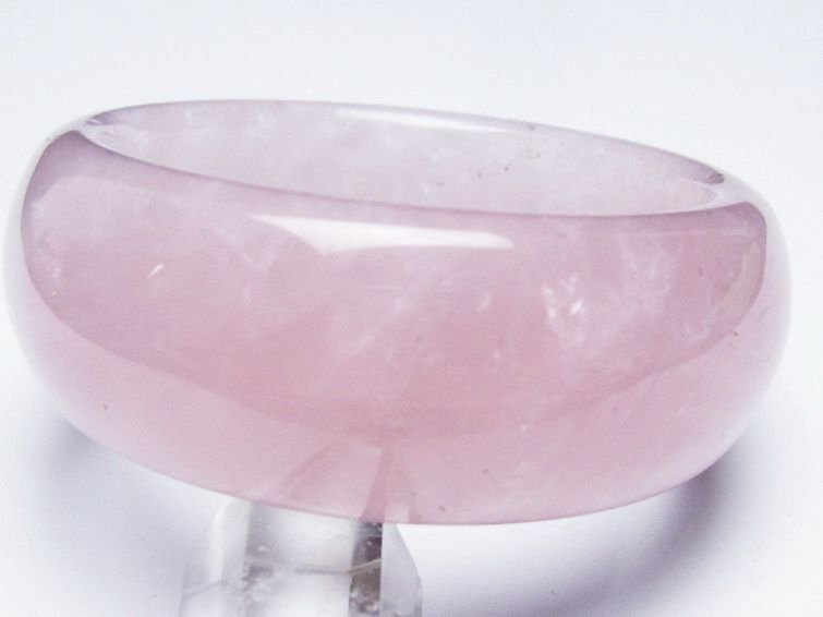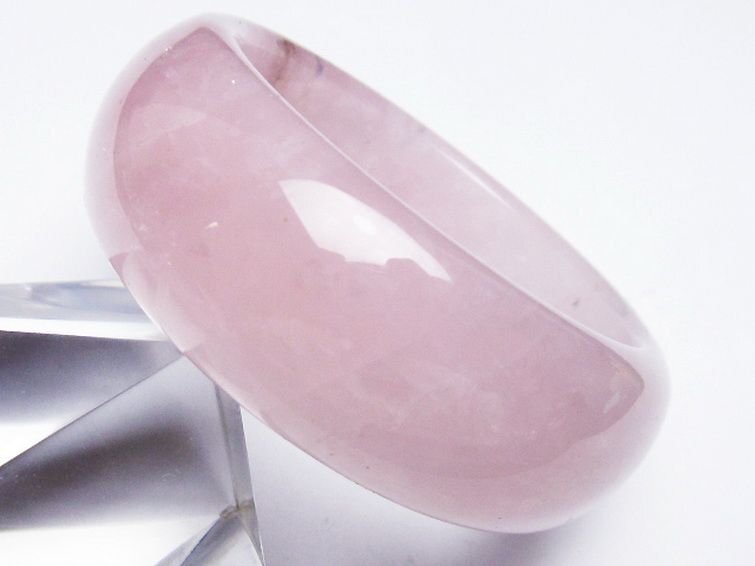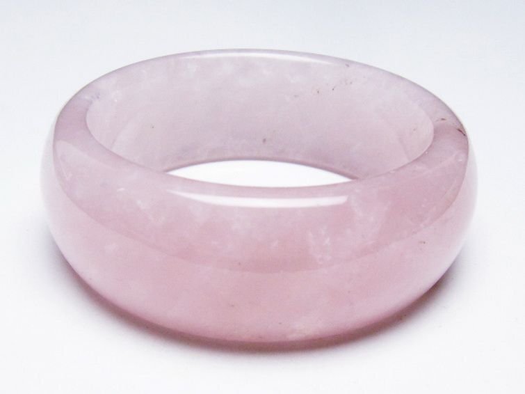 ■商品名: ローズクォーツバングル ■商品ID: T492-3698 ■商品重量:約 102.9g ■商品サイズ:内径約:56mm 外径約:76mm 【ローズクォーツ(紅石英)】 ローズクォーツは柔らかい優しいピンクの水晶です。アルミニウムや酸化チタンなどの結晶を含むためにピンク色になると考えられています。これらの微細な結晶が分散しているため、石全体の透明度が低く、濁っていたりひびがあります。高品質の透き通ったものや、スター効果が確認できるものは珍重されています。 この石は愛や優しさ、内面美を象徴する石です。ローズクォーツと言うと「恋愛運アップ!」といったイメージが一般的ではないでしょうか。 ローズクォーツは持ち主の内面の美を高め、女性の幸せや喜び、愛を呼び起こしてくれるとされています。また過去の傷ついた経験から、ついネガティブ思考になったり自分に対してマイナス思考になったりするような、負の感情を優しさで包み込み癒し、自分を許し愛せるようになるそうです。 この石は目当ての異性を連れてくるというよりは、内面的に美しくなり自分を良い意味で大切にする自己愛を知ることにより他者から愛されるという効果のようです。例えば自分なんか大嫌い、自分なんかどうせ、と思っている時に、他人から愛されるでしょうか。それよりも自分を認めて受け入れ、愛していると内面が輝いて魅力が溢れます。その魅力により周囲の人から愛され、他人から愛されることにより一層他人を愛せるようになるという、愛を呼び込む循環を造ってくれるそうです。 そういった意味で、実は恋愛運アップというよりはもっと定義の広い愛情運アップの効果があるとされています。 こういった広い意味での愛を得ることができるとされ、人に対して思いやりを持ち許せるようになることから、人間関係の改善や、苦手だけれどどうしても付き合わなければならない人がいるといった場合でも活躍してくれることでしょう。 【水晶(石英、クリスタルクォーツ)】 水晶とは石英を指しますが、一般的に無色透明のものをクリアクォーツやロッククリスタルと呼んでいます。 水のように美しく透き通ったものが良いと思われがちですが、内部にヒビや他の鉱物などのインクルージョン(内包物)が入っているものがあり、それが天然物の証。また、インクルージョンによって様々な種類に分類され、それぞれ違った印象を与えてくれます。 古くから呪い事に使われてきた水晶に秘められたパワーはとても万能で、あらゆる場面に対応するといわれています。特に邪気を祓う力が強いため、人間関係を円滑にしたり、心身をクリアな状態にしたい場合に最適です。また空間を浄化する作用もあるとされ、インテリアとしても高い人気を誇っています。 石自体に強い自浄作用があり、他のパワーストーンが吸収した負のエネルギーを浄化するといわれています。更にアクセサリーとして他の石と組み合わせる場合、それぞれの石の個性を引き出しバランスを取ってくれる効果があるそうなので、ぜひとも組み込んでおきたいですね。 パワーストーン入門に最適な水晶ですが、愛好家にとってはかなり奥が深く最後に行き着くのもこの石なんだそうです。何もかもを見透かすような透明な水晶には、本当に神秘的なパワーが宿っているのかもしれません。 |