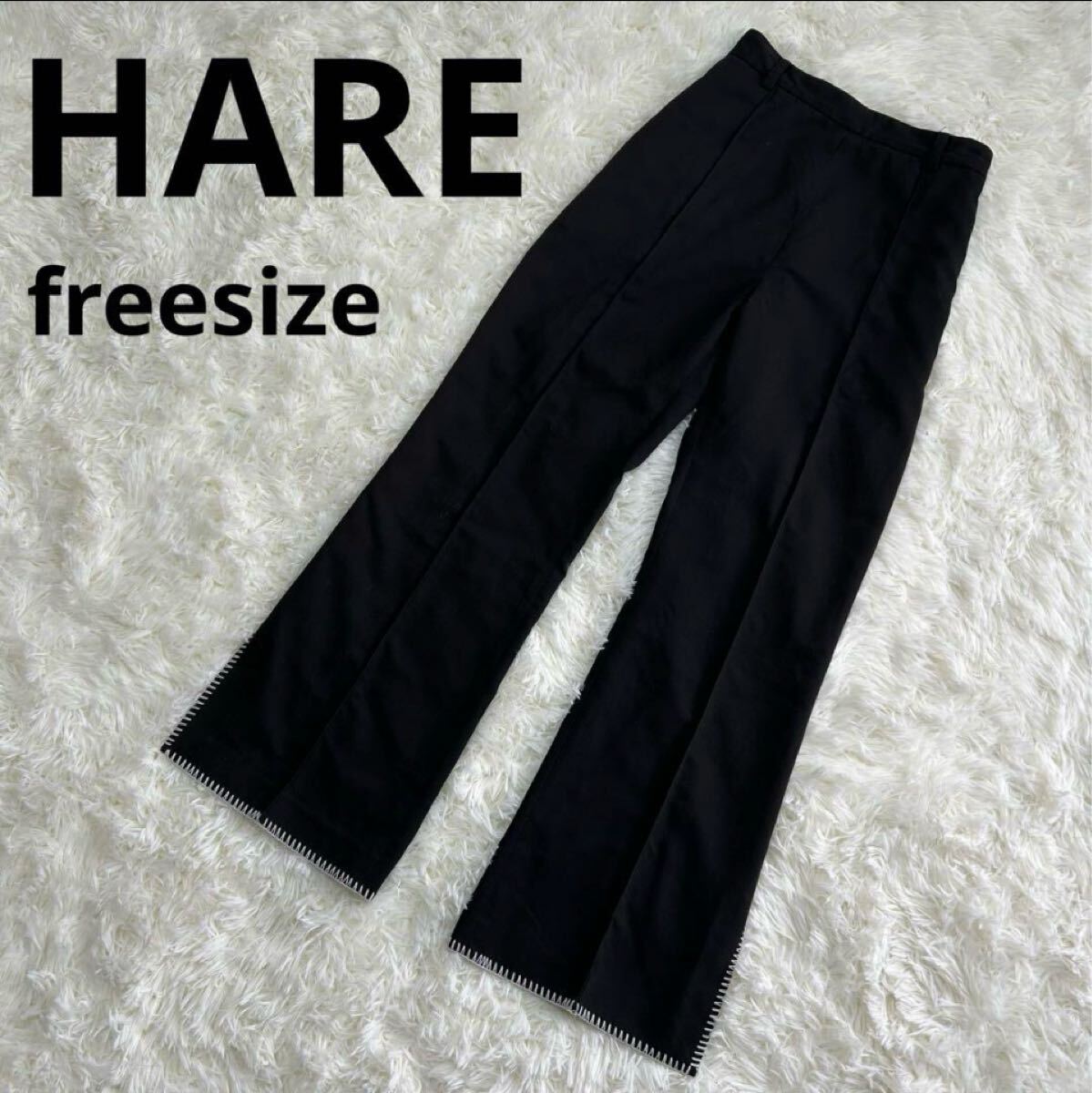 HARE ハレ、パンツ、裾ステッチ、ブラック、フリーサイズ