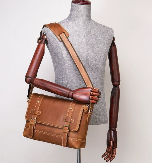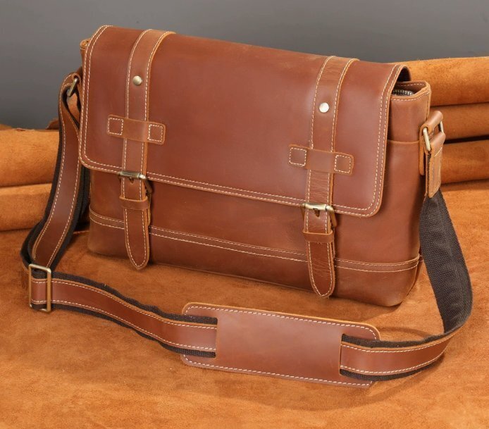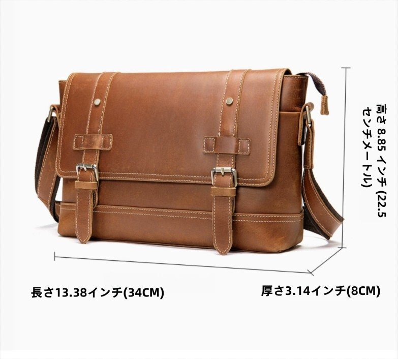 美品☆職人手作りヌメ革 メンズ ショルダーバッグ メッセンジャーバック 斜めがけ 肩掛け レザー ビジネスバッグ 大容量 通勤