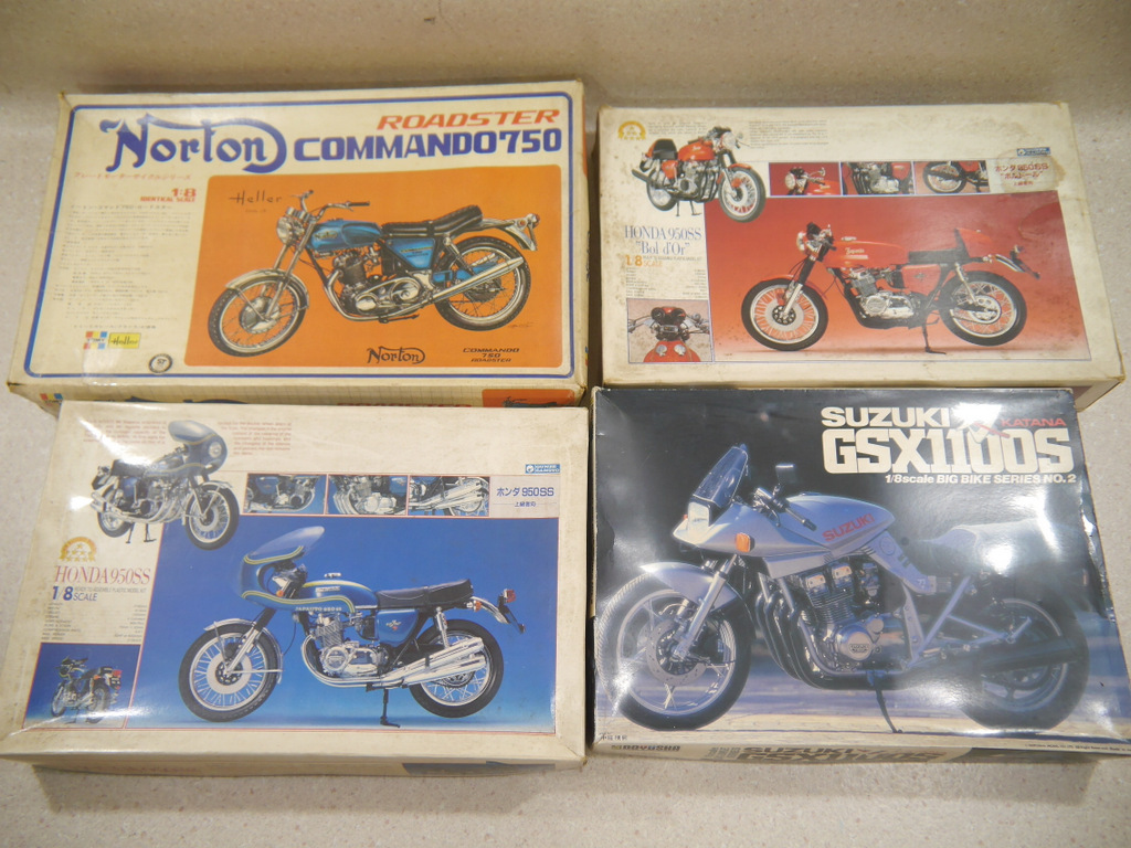 59プラモデル二輪1/8等まとめてセットHONDAホンダ950SSノートンコマンド750ロードスターGSX1100RSスズキ刀KATANA希少レア入手困難JAPAN