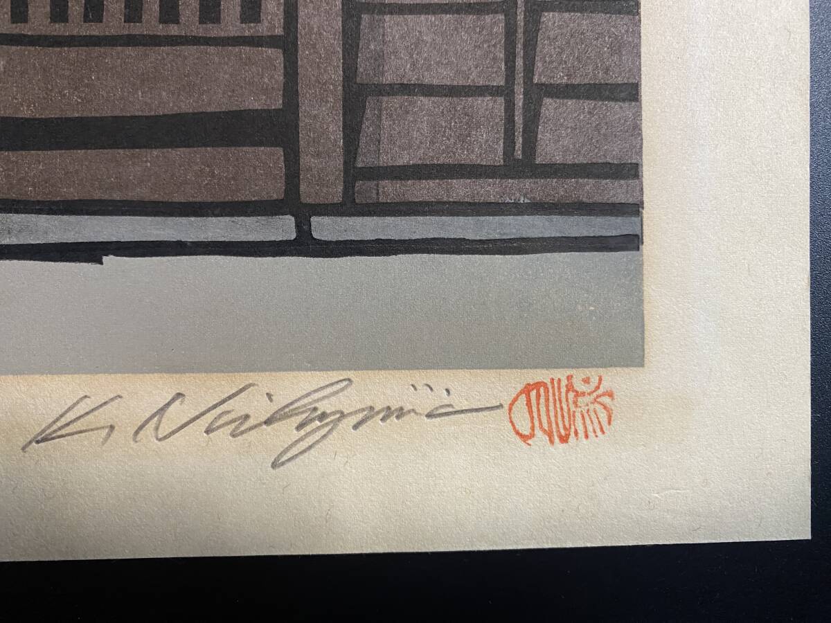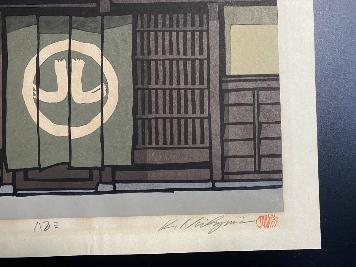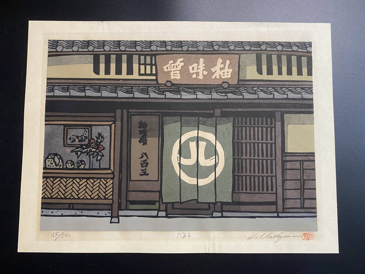 西嶋勝之画 「八百三」 京都 真作 木版画 柚味噌 ed164/500 サイン有 本紙のみ 京都老舗 浮世絵 現状品