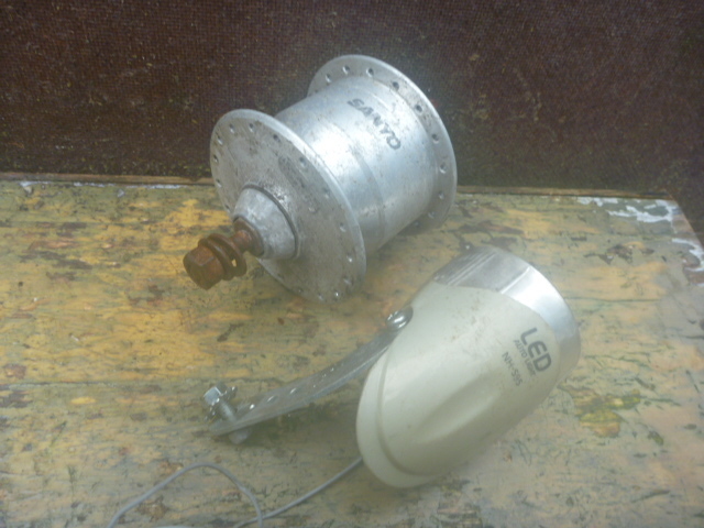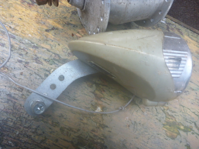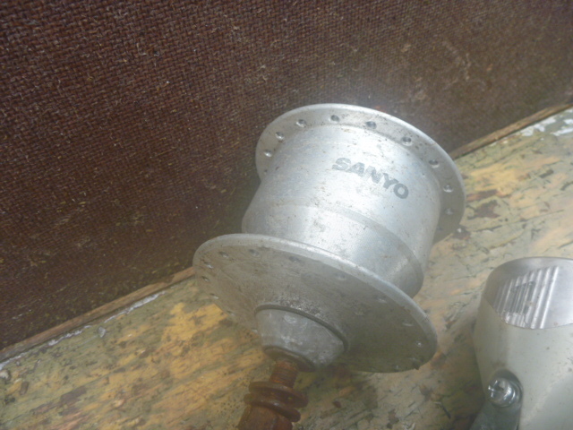 | ★商品説明★ | ★携帯からご覧の方及び発送料を聞く方がいらっしゃいますが送料等発送情報等下にありますので最後までよくお読み下さい。 ★評価の悪い方及び新規の方のご入札は1度質問コーナーよりご連絡下さい。 ご連絡の無い方のご入札はイタズラ・トラブル防止の為此方の判断で削除する場合がありますご了承下さい。 ★宅配便発送分及びゆうパックの場合必ずお読み下さい★ ※集荷・配達不可地域につきましては、予告無く変更となる可能性がございます。 お急ぎの方、遅延にご理解いただけない方は入札ご遠慮ください。ご落札の方には、 状況が判明次第ご連絡をさせていただきます。 大変ご迷惑をお掛けいたしますが、ご了承の程よろしくお願い申し上げます。 ★バイクや自転車・車の部品は消耗品です。完全クレーム対応致しません。保証等お考えの方はお店で整備された物を ご購入下さい。現状販売です。(現状販売の意味の判らない方はご遠慮下さい。) ★商品の詳細は文字では説明出来ない部分が有ります。ごくまれに、説明文に無い等アゲアシ取りをされる方 や神経質な方は、ご遠慮下さい。ご入札は良くお考えの上宜しくお願い致します。 ★動作確認済み。 ★26インチのホイールから取り外しました。 ★スポークの長さ:26インチの場合約27cmのスポークが要ります。 ★スポークの長さ:27インチの場合約29cmのスポークが要ります。 ★スポークの長さ:28インチの場合約29cmのスポークが要ります。 ★ライト切れの無いLEDライトです。 ★ロックナット(エンド)幅:100mm。実寸ですので、若干の誤差はご了承ください。 ★ライト::AUTOLIGHT NH-S95 LED。焼け・くもり・キズ・シミ・メッキ剥がれ有り。 ★ダイナモ:サンヨー。スポークを入れる所サビ有り。キズ・サビ有り。 ★ネジ類:サビ大ですのでおまけとお考え下さい。要らない方は落札の際お申し付け下さい、外してお送り致します。 ★スポークを入れる駒数36です。 ★このままでは使用出来ません。取り付けは専用のスポークが必要です。 ご自身の駄目になったダイナモのホイールがあればそのスポークで張替は可能です。 ★スポークを張り替えて実際に自転車に取り付けるときの注意点を下記に記します。↓ ★取り付けのコツは締めすぎず緩すぎず車輪が違和感無く回る様に取り付ければ大丈夫です。 ゴリゴリ音があれば締め過ぎです、その時はライト点灯しません。 ★前輪を締めるコツですがナットに負荷がかかりきつくなった時1回又は2回程クッかクックッとご自身が負荷が かかる状態がだいたい10kg前後ぐらいの最良な締め付け具合です。 これを覚えると家電・タイヤ交換等回して締める物は大抵大丈夫です。(全般に保証している物では有りません) ★自転車・車バイクの様に不安が有る物は外れたら怖いと過剰に力が入り結構きつく締める場合が 心の中で知らず知らず生まれます。お気を付け下さい。 ★一番判る判断テストは上下逆さま(反対にして)で車輪を指で軽く回します。 その時ゴリゴリに締めますとカックンカックン・1マスメ~2マスメ間隔等に カカクンカカクンと車輪の負荷がかかり上手く回らない車輪が止まる状態が締めすぎです。 早く・強く回すと判りづらいです。ユックリとお願いします。 ★正常は指で軽く回しますと普通に違和感無くスーット車輪が回ります。 その際明るい内はライトのセンサー部分の本体後に携帯のカメラ部分のような窓が有りますのでここを押さえ光を センサーに関知させないで行うと点きます。 ★結構敏感で精密な部分ですのでビニールテープの黒かガムテープ・黒の布等で塞がないと関知して明るい内は 点灯しません。夜であればそのままで点灯します。 ★大事な事ですがホイール(ダイナモ)とライトの線がちゃんと繋がっていなければ付きませんお気お付け下さい。 ★LED以外稀にライトの中にある銅版にライトが接触してなければ球を交換しても付きませんので銅版を軽く曲げて 球に接触するようにして下さい。球は消耗品ですので切れている時は交換して下さい。対応は致しません。 ★テストはスチールのフロントフォークでしておりますアルミ等特殊な物は点かない可能性が有りますので ネット・自転車屋さん・判る方に聞いた上でご入札お願い致します。その際安易に落札され点灯しない等 一切返品・返金等対応致しませんのでご了承頂いた方のみ宜しくお願い致します。 ★全体に年相応のサビ・キズ有ります。 ★発送は記載されているのみです。他の発送は不可になります。梱包代を含んだ金額になりますので、 ご理解頂いた方のみご入札下さい。実際の重量とは異なります。 ★割れ欠け見当たりませんが細かい部分は未チェックですので大事な部分はご質問で確認して下さい。 ★質問で確認のない欠け割れ部分は対処致しませんのでお気を付け下さい。 ★全体にキズ・シミ・サビ等有ります。部品取り・塗装等してお使い下さい。 ★評価の悪い方及び新規の方のご入札は1度質問