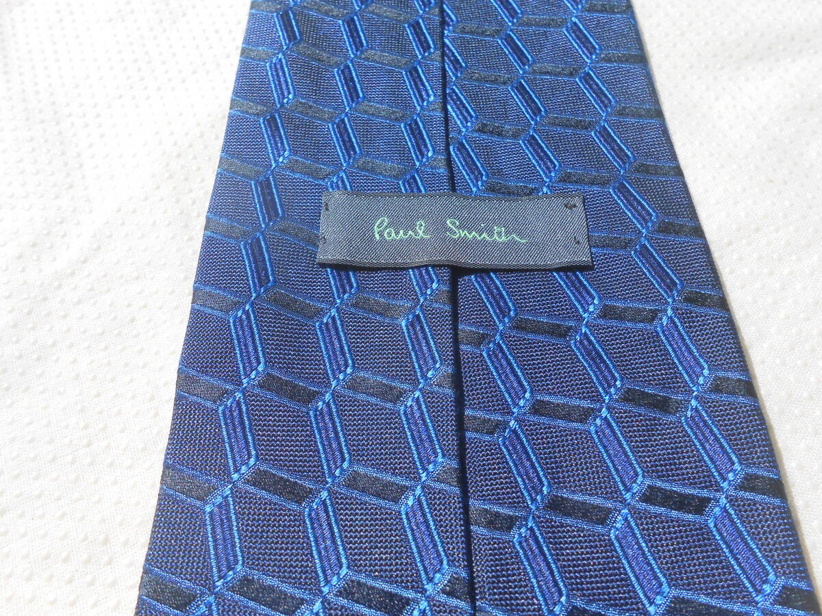 G467高級ポール・スミス総柄デザインお洒落厚手ネクタイ紺