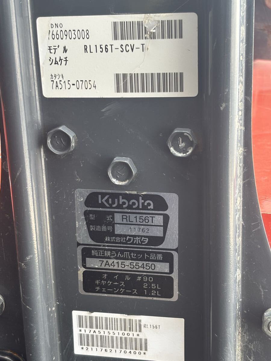 ご覧いただきありがとうございます。 クボタ ロータリー RL156Tの出品になります。 約1630mm×約1290mm×約1010mm ※スケール測りの為、多少の誤差はご了承願います。 手回しによるPTO回転動作確認済みですがトラクターに取付けての実演は行えておりません。 作業幅:1500mm 取付サイズは写真にてご確認ください。(Bヒッチ) 爪軸からオイル汚れはありません。爪はまだまだ使えると思います。 フラップカバー、尾輪左右付いております。作業機特有の錆汚れはあります。よろしくお願いします。 |