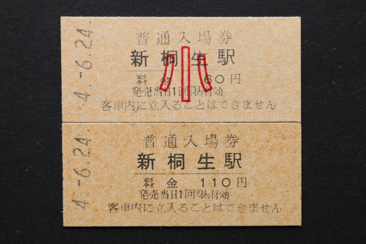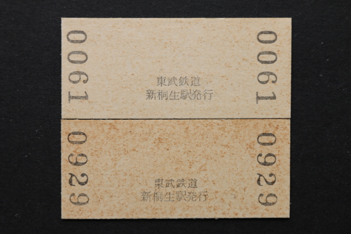 東武鉄道地紋入り入場券 新桐生駅 大人券小児券2枚セット 110