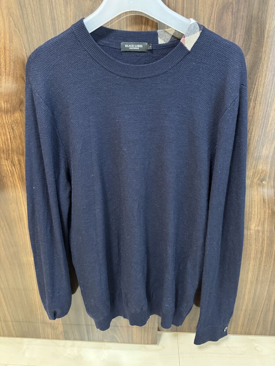 ブラックレーベルクレストブリッジ ウールクルーネックニットネイビーLサイズ