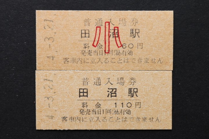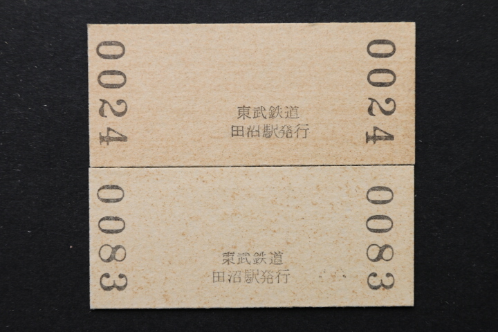東武鉄道地紋入り入場券 田沼駅 大人券小児券2枚セット 110