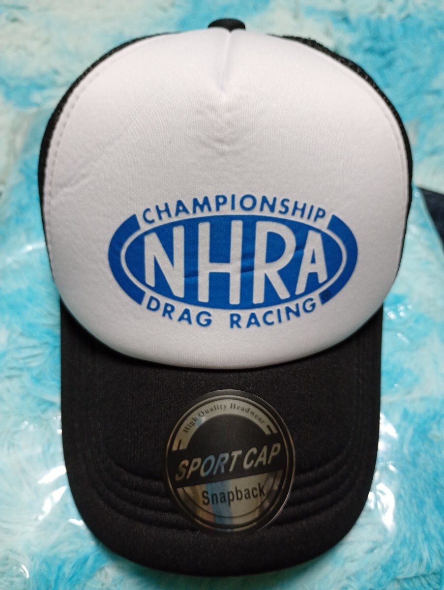 ☆新品「NHRAチャンピオンシップ ドラッグレース メッシュ 白/黒」帽子/キャップ