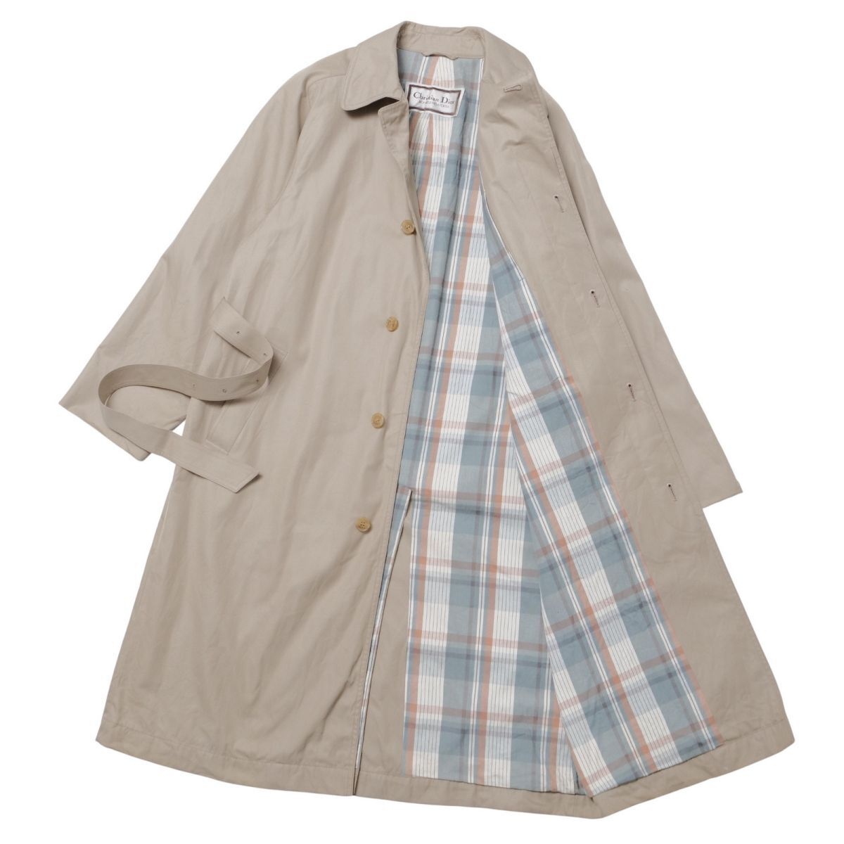 TJ4538=ヴィンテージ*クリスチャンディオール/Christian Dior*メンズS*ロング*ステンカラーコート*ベルテッドコート*コットン*ベージュ系 | |||