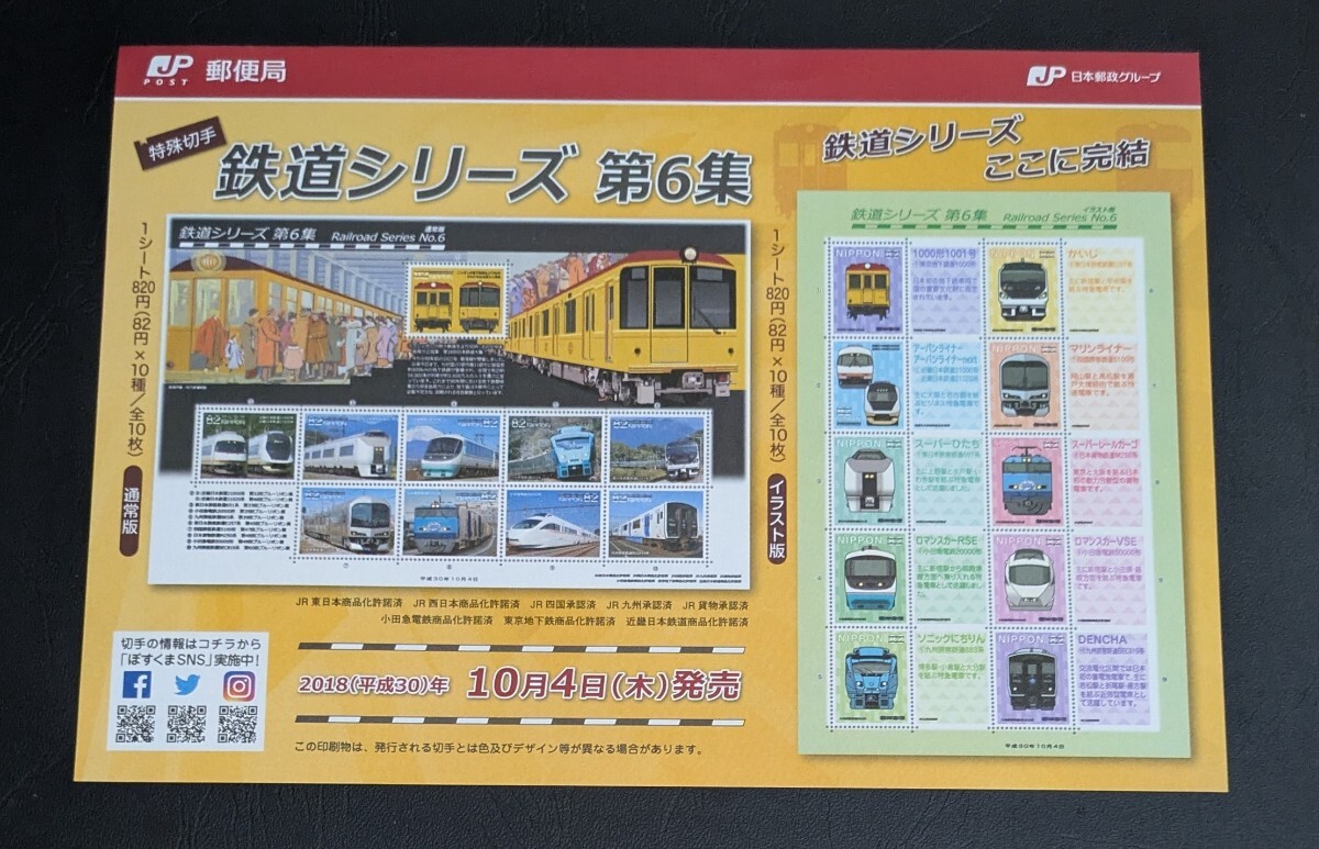 2018年・記念切手-鉄道シリーズ第6集(解説書付)シート