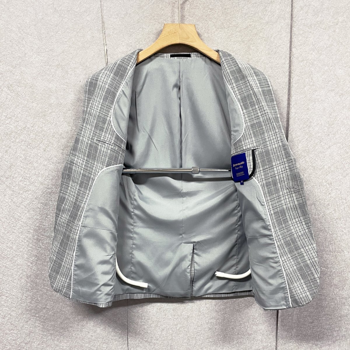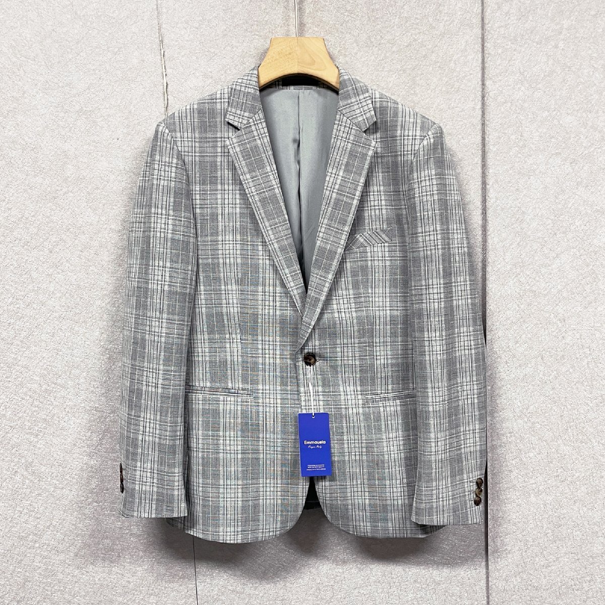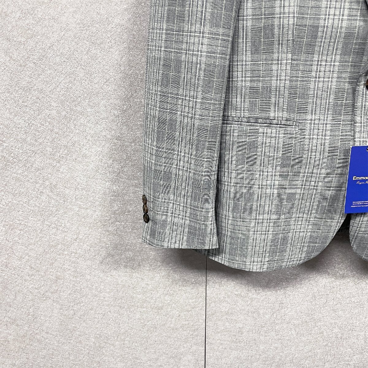 上品・テーラードジャケット 定価6万◆Emmauela・イタリア・ミラノ発◆上質 綿混 快適 ソフト チェック柄 スーツ 紳士 フォーマル 2XL/52