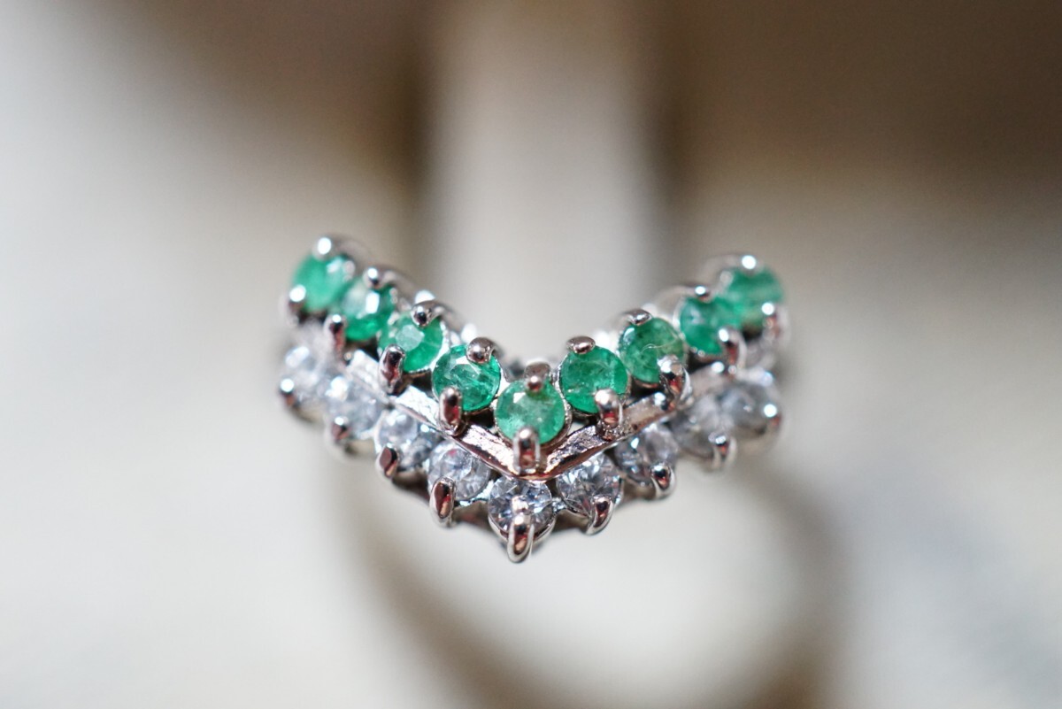 417 天然エメラルド リング 指輪 ヴィンテージ アクセサリー SILVER刻印 天然石 色石 宝石 カラーストーン 装飾品
