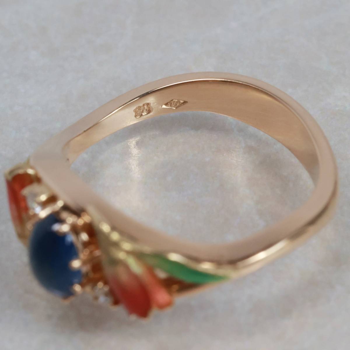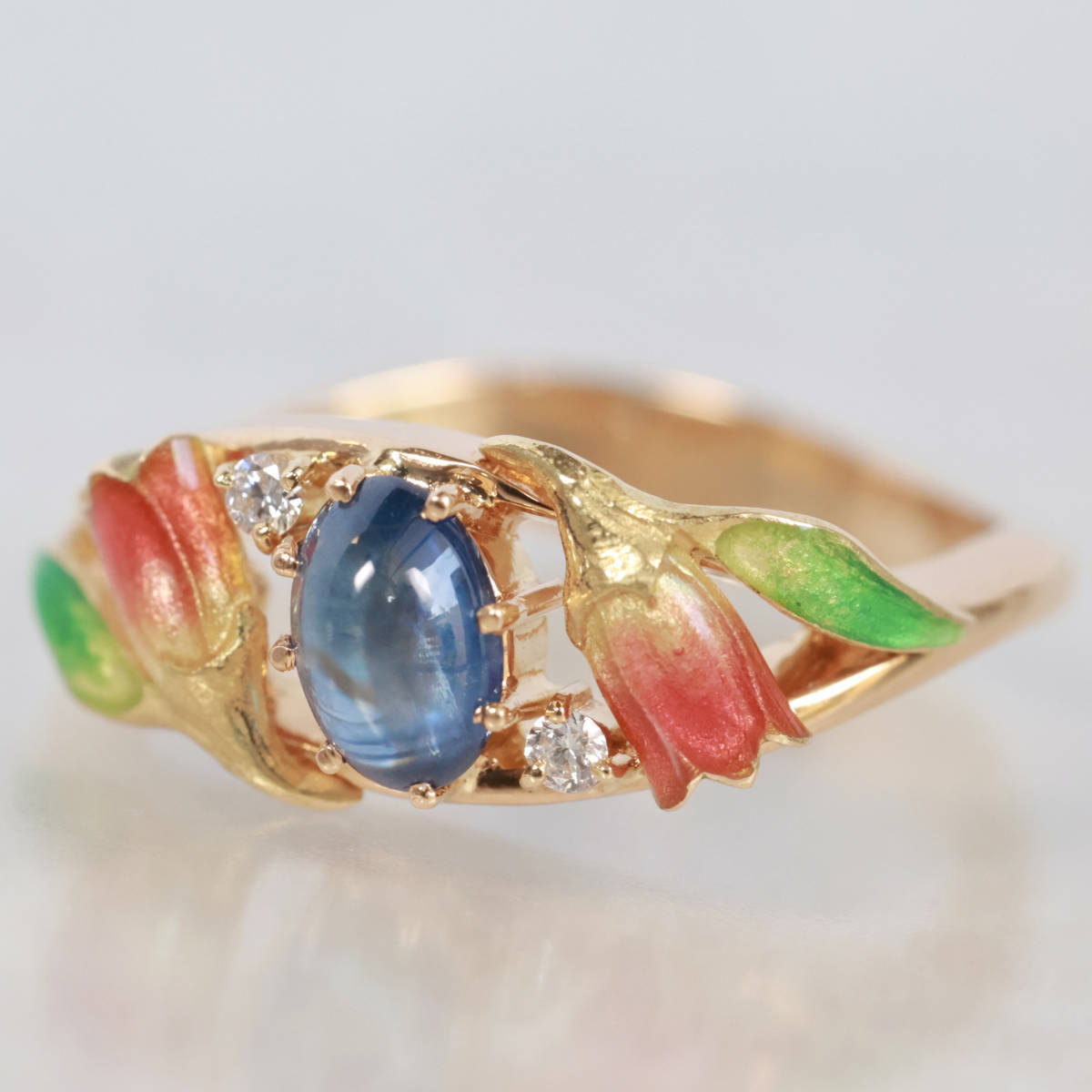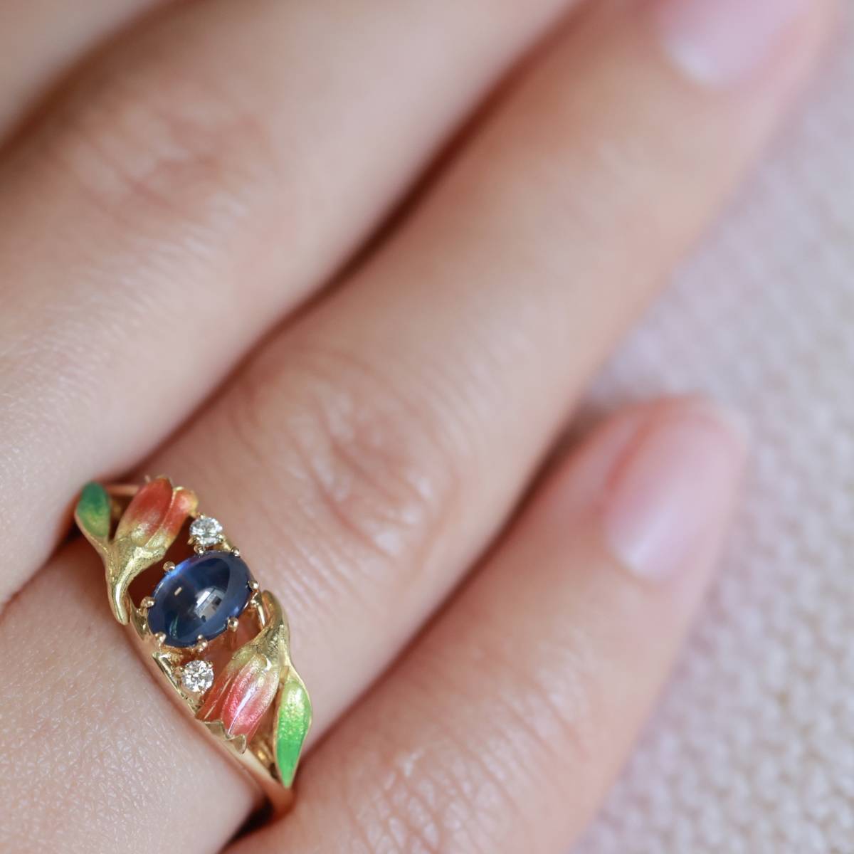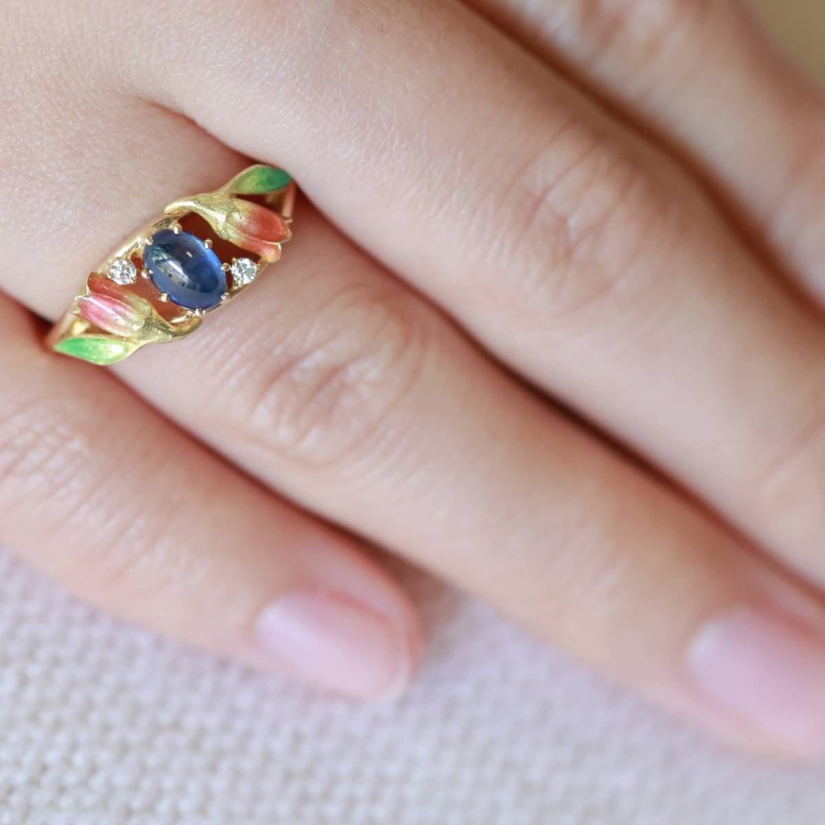 750 中嶋邦夫 バスタイユ エナメル サファイア ダイヤモンド リング チューリップ K18 YG