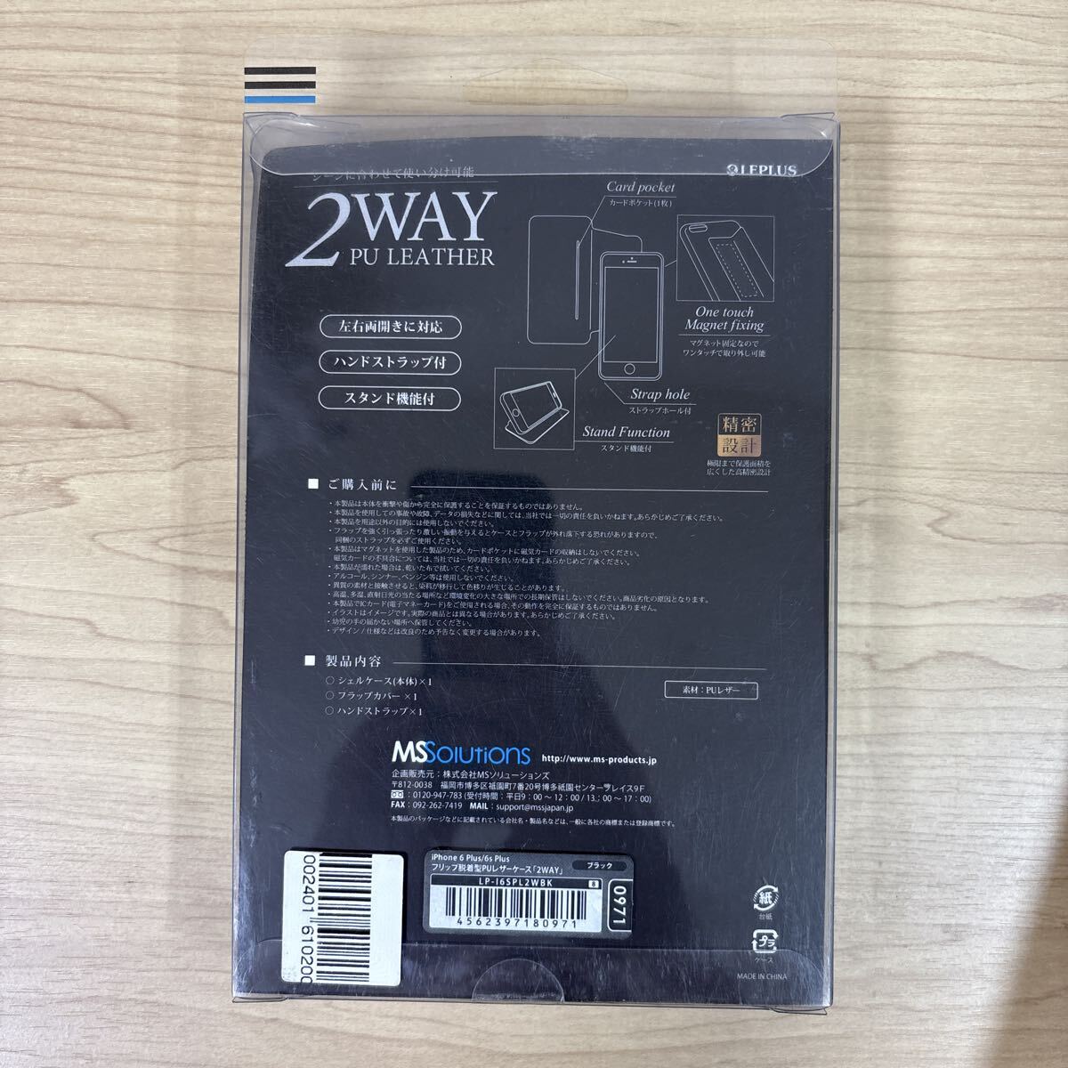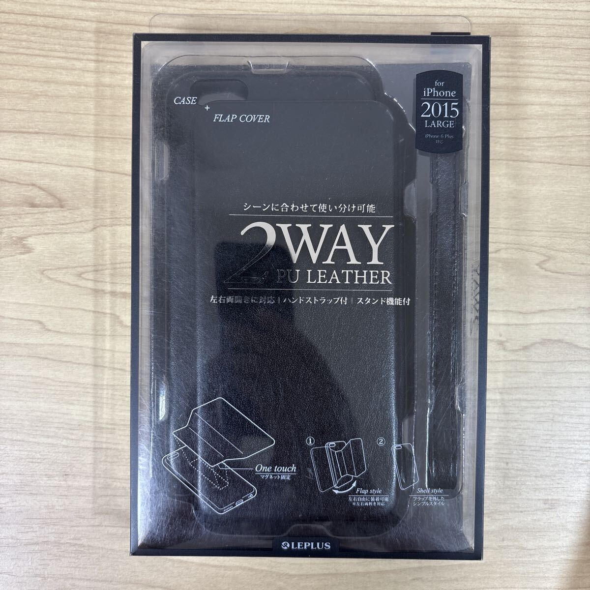 iPhone 6s Plus 2WAYレザーケース ブラック 左右両開き ハンドストラップ付 スタンド機能付き