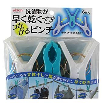 | アイセン 洗濯物が早く乾く 立体干し洗濯バサミ つながるピンチ6個入り |
