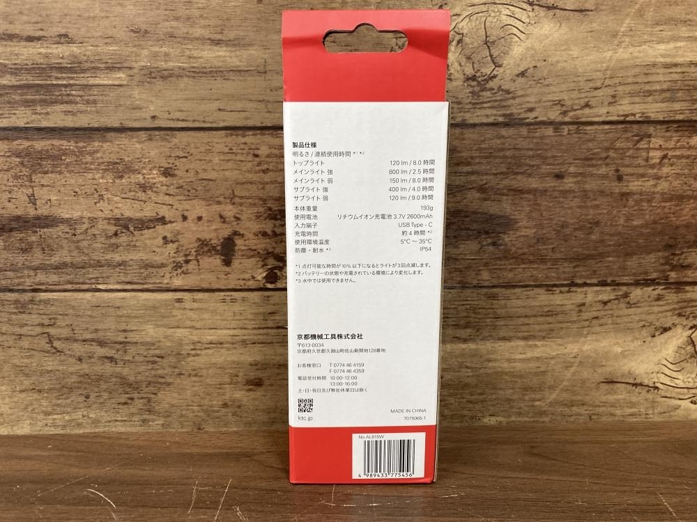 京都機械工具 KTC ■商品名 充電式LED折りたたみライト ■型番 AL815W |