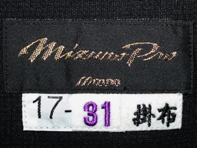 ◆商品説明◆ | 阪神タイガース・掛布雅之氏の実使用ユニフォーム上下です。 ミスタータイガースが現場復帰して二軍監督を務めた時代、2017年7月の「ウル虎の夏」シリーズ3連戦中に着用したユニフォームで、本物の上下セットになります。 メーカーはミズノプロのメッシュタイプ、サイズは掛布氏の完全オリジナルで、タグは【17-31 掛布】のトリプルタグ様式。 このユニフォームは甲子園球場でのウエスタンリーグ公式戦でも着用され、上下ともにリアルな着用感が現れた珠玉の一着です。 ―商品詳細― 〔仕様〕 2017 阪神タイガース『ウル虎の夏』 #31 掛布雅之二軍監督・実使用ユニフォーム上下セット 〔メーカー〕 ミズノプロ製/メッシュタイプ 上下とも【17-31 掛布】のトリプルタグ表記。 〔サイズ〕 上=身幅64×着丈86cm、下=胴囲86×丈88㎝ (選手実寸カットにつき、サイズ表記はありません) 〔状態〕 実使用による着用感はありますが、価値を損ねる汚れや 傷み等なく状態良好です。 掛布氏が1988年の現役引退後、一度も現場復帰することなく、数度あった他球団からの監督就任要請も断り続けた中、2013年秋の打撃コーディネーター就任を経て、2016年から二軍監督に就任。 28年ぶりのユニフォーム姿は一軍の金本監督を超える一番人気で、横田慎太郎や高山俊など、若虎の飛躍に貢献したほか、2017年にはドラ1ルーキーの大山悠輔選手を開花させました。 ちなみに、このユニフォームが着用された7月20日からのファーム、対ホークス戦は2勝1敗と勝ち越した縁起物の一着です。 「栄光の背番号31」を記憶に刻む品として是非いかがでしょうか? |