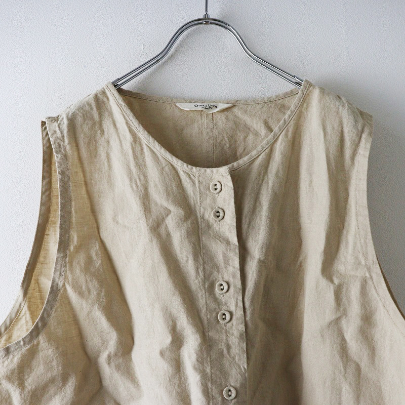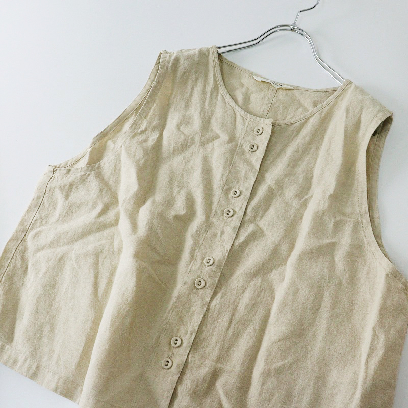 2025SS サマンサモスモス Samansa Mos2 SM2 Cross×Linen 並びボタンベスト F\ベージュ リネン ノースリーブ ジレ【2400014616125】