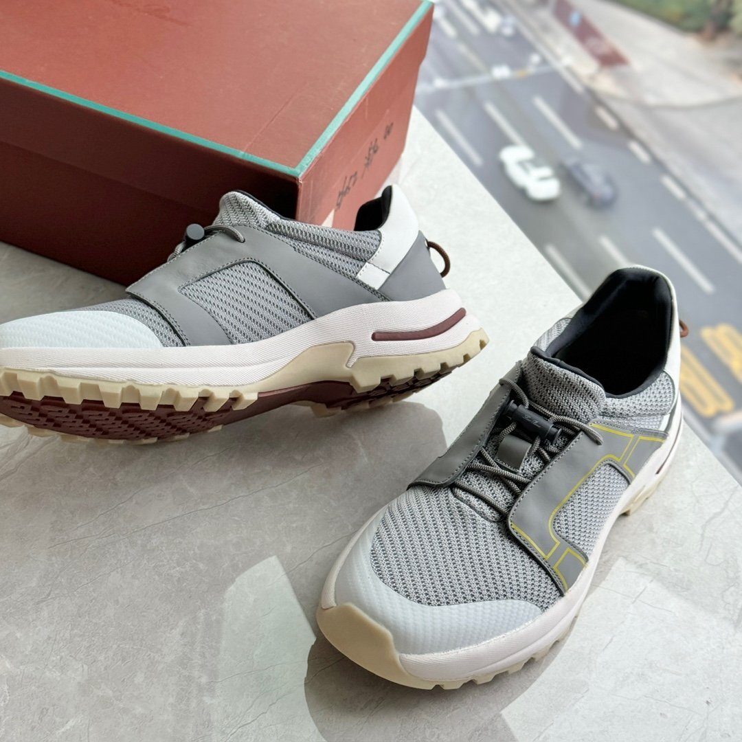 40/25.0cm【送料無料】★Loro Pianaロロピアーナ ★メンズ メッシュ レザー スニーカー, ウォーキングシューズ, カジュアルスポーツシュ