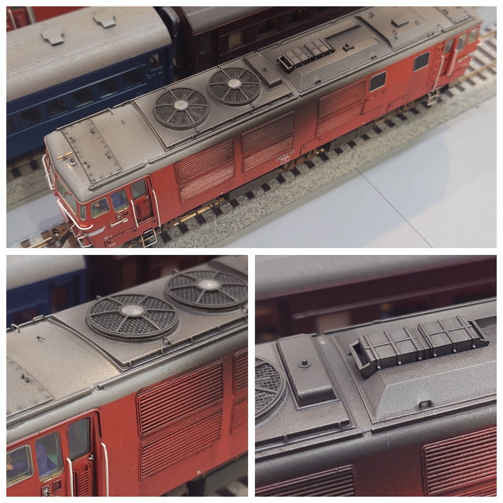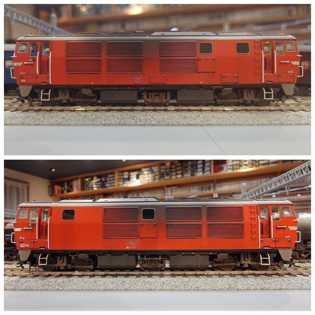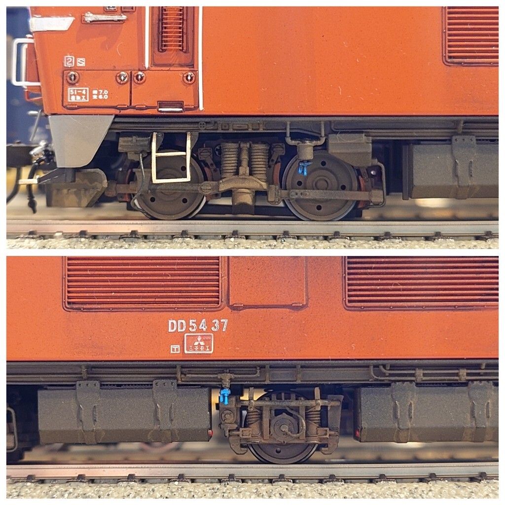 ●まずはじめに…当方は業者ではありません。納品書、領収書は発行いたしません。●ご覧いただきありがとうございます。造形村DD54 6次形 激汚しカスタマイズ37号機を出品いたします。●RM MODELS ARCHIVE 鉄道車両ガイドvol.1 DD54に画像が掲載されている37号機をモチーフとしました。●1エンド側に「出雲」ヘッドマークを、2エンド側にヘッドマーク受けパーツを設置。少量のゴム系接着剤で止めてますので、落札者様で配置を変えることは可能です。●画像では2エンド側のジャンパホースを福知山タイプ(連結器左右のホースを外した元空気溜引き通し栓のみ残した姿)にしていますが、1エンドと同様の米子タイプにして出荷いたします。福知山機にするための白コックパーツを4個お付けします。●種車は本年8月に大手中古ショップより購入した2012年ロットの未使用保管品です。走行痕ありません。灯火(主灯、尾灯スイッチ入り切り問題なし)、走行に問題はありません。極めてスムーズに走行しますが、元の製品をいじり倒して台無しにしておりますので1円スタートといたします。メーカー出荷直後の店頭状態や、転売目的押し入れ熟成手袋扱いの潔癖状態をお望みの方は本オークションへの参加をご遠慮願います。●付属品はお付けするものが全てです。●カスタマイズは以下の通りです。①車番はトレジャータウンのメタルインレタ。他のインレタと共に貼付後に2種類のコーティング塗装実施。②車体全体を艶出し塗装し、適所強めのウェザリング。ルーフの煤汚れはもちろん強めに表現。③車体側面の点検蓋ロックに白の色差し。④中間台車TR104Aの非公式側に速度検知ケーブルを真鍮線で表現。⑤スカートのエアホースはTOMIX製パーツに換装。⑥足回りは全てバラし、洗浄、ミッチャクロンにて下地処理の後にサフ処理。塗装で新製状態にしたのち全体をミディアムな汚し。ブレーキシュー周り、動輪に赤錆のニュアンスを強調させ技巧を尽くしたウェザリング加工を施しております。実機同様のメリハリと奥行きのある造形表現をお楽しみください。⑦台車フレーム、燃料タンクのコック類に色差し。⑧運転席の機器類塗装。1エンド側に運転士(KATO製国鉄運転士)を乗務させています。●元々のプラが見えているところは皆無です。浅薄なプラの質感を払拭すべく徹底的に手を加えております。●車輪は踏面のクリーニングを実施。再組み立ての際にグリスアップ(製作派に定評あるベルハンマーNo.2を使用)を施し、より滑らかに走行致します。●ウェザリングはウォッシングとブラシワークを駆使し「汚し」⇒「定着処理」⇒「化粧汚し」と3段階の作業をしております。塗膜は堅牢に仕上げてありますが、取り扱いにはご注意ください。●今回の作品も店頭商品の玩具状態に現実味を感じない方、働く車両に魅力を感じる方等、製作の意図をご理解いただける方のみご入札ください。素人が製作したものですのでメーカー完成品のような完璧なものがご所望の方は入札をご遠慮ください。●必要以上なマクロ撮影で肉眼では気付かぬアラも見えております。以上のような車両ですので現状は画像を参考にして、「ノークレーム、ノーリターン」でお願いいたします。●また、トラブル防止のため、新規の方、評価数が9以下の方、悪い評価が3以上の方(以前当方との取引実績のある方は除く)は入札をご遠慮ください。特に既に高額な入札額になっている場合は恐れ入りますが、こちらの判断で削除いたします。上記に当たる方で、どうしてもご入札を希望される方は、質問欄からまずご連絡くださいませ。●オークションのシステムが落札者保護に変更なったことをご了解のうえ、商品到着を迅速にご報告できる方のみご入札くださいませ。●まれに、締め切り延長まで散々競ったあげくに、なかなか最初の連絡がいただけない方がいらっしゃいます。迅速な対応が難しい環境にいらっしゃる方はオークションへの参加をご遠慮くださいますようお願い申し上げます。●落札後12時間以内に取引開始ができない場合、落札後48時間以内にかんたん決済お手続きがなされない場合は「落札者都合」にて削除。速やかに補欠繰り上げと致します。●落札後12時間以内にかんたん決済でお支払い手続きしていただけましたら即日発送いたします。かなわぬ場合は発送が翌週になることがありますのでご了解ください。●元箱におさめ、ゆうパック(80サイズ、元払い)のみでお届けいたします。●お支払い手続き次第では発送が翌週末以降になることもありますのでご了解願います。