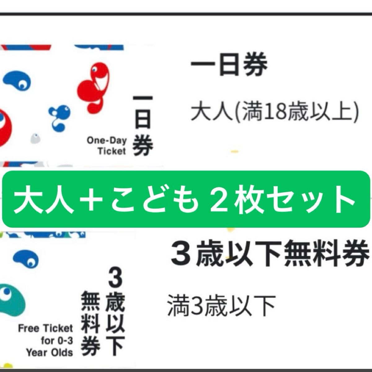 券種:大人 一日券 1枚 + 3歳以下 1枚 の2枚