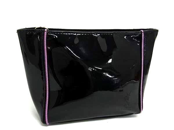 YVESSAINTLAURENT イヴサンローラン パテントレザー マルチポーチ マルチケース メイクポーチ 小物入れ レディース ブラック系 DH4357