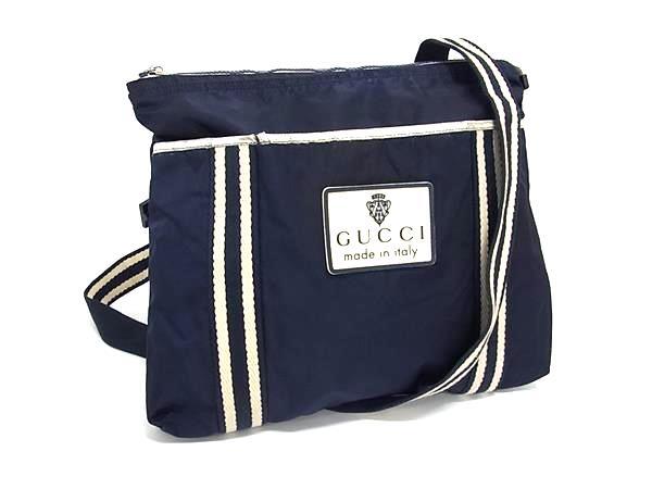 1円 GUCCI グッチ 189662 クレスト ナイロン クロスボディ ショルダーバッグ レディース メンズ ネイビー系×アイボリー系 DB2952