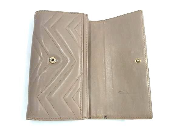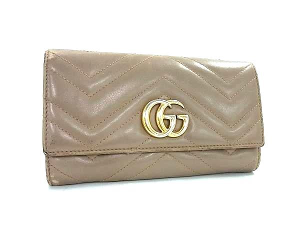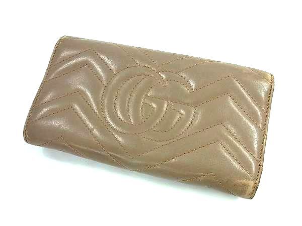 1円 GUCCI グッチ 443436 GGマーモント レザー ステッチ 二つ折り 長財布 ウォレット 小銭入れ 札入れ レディース ベージュ系 FV2353