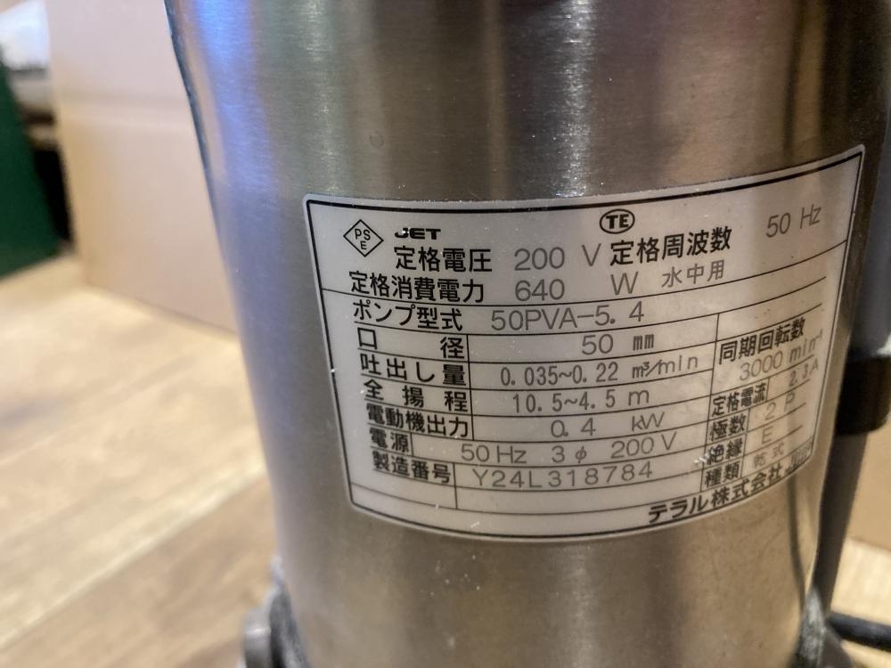 テラル ■商品名 排水水中ポンプ ■型番 50PVA-5.4 現状品 |