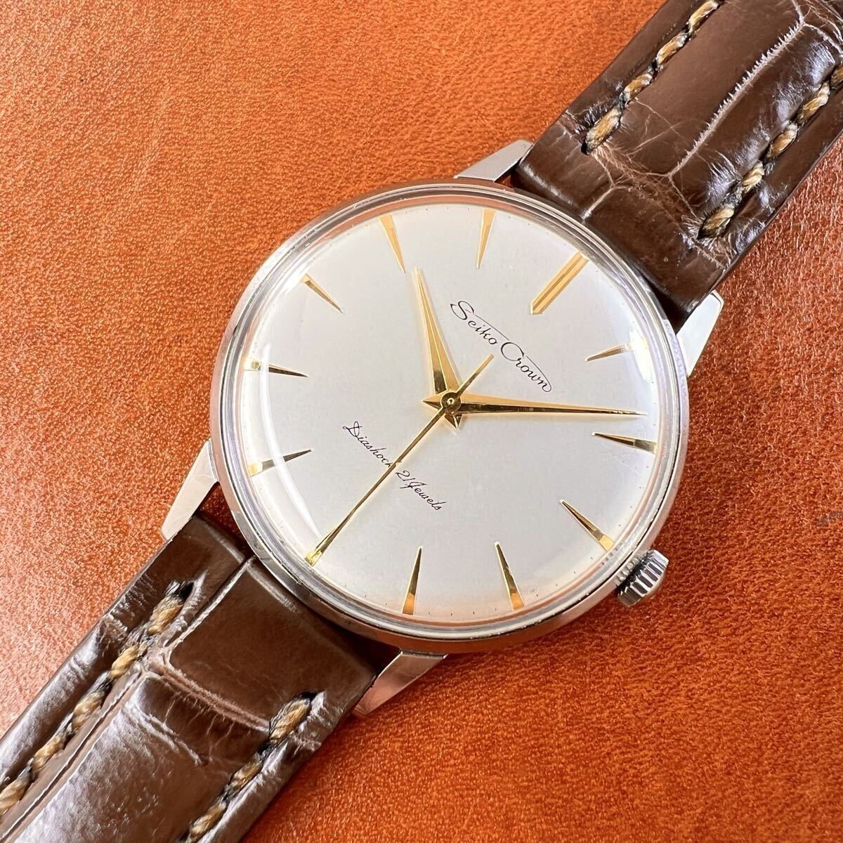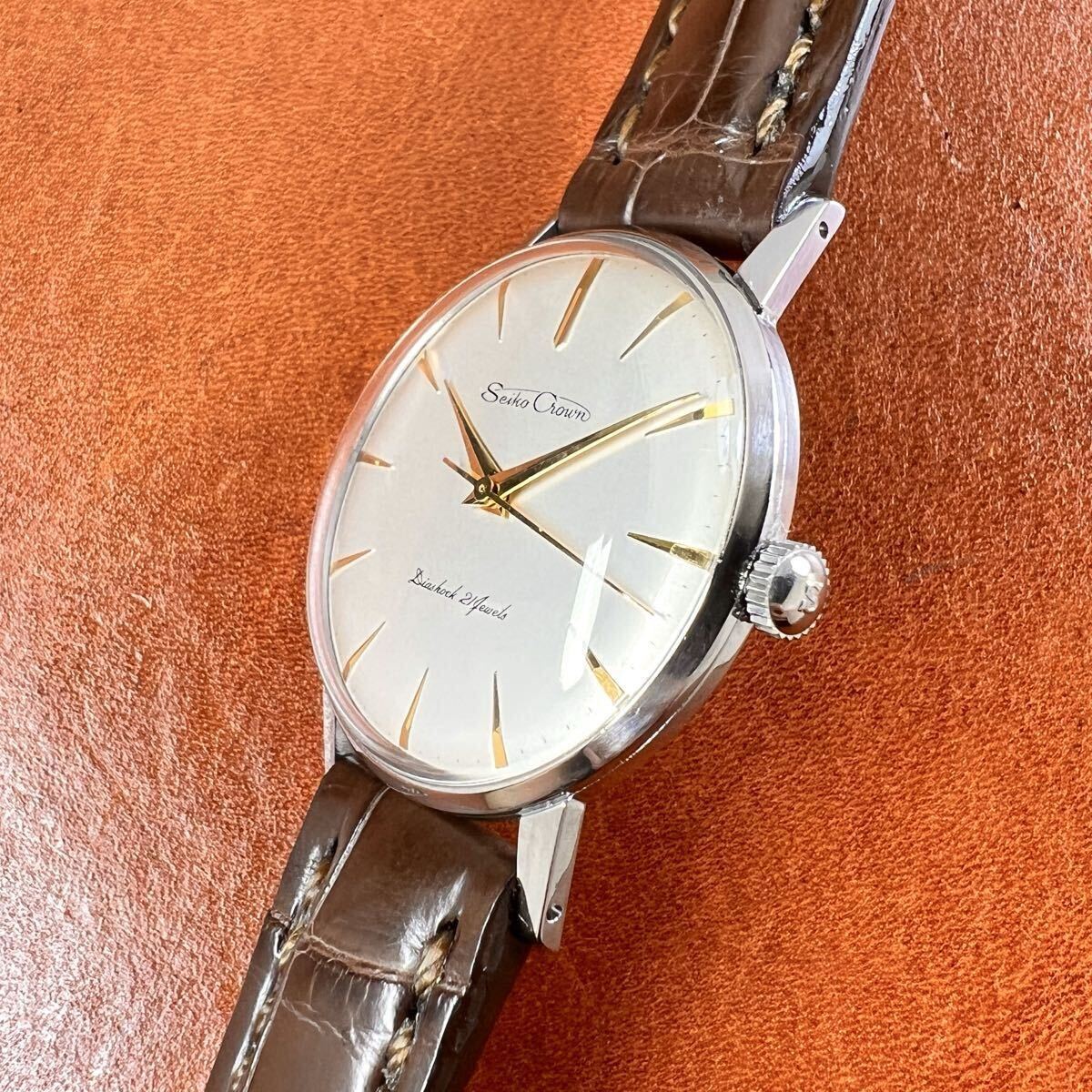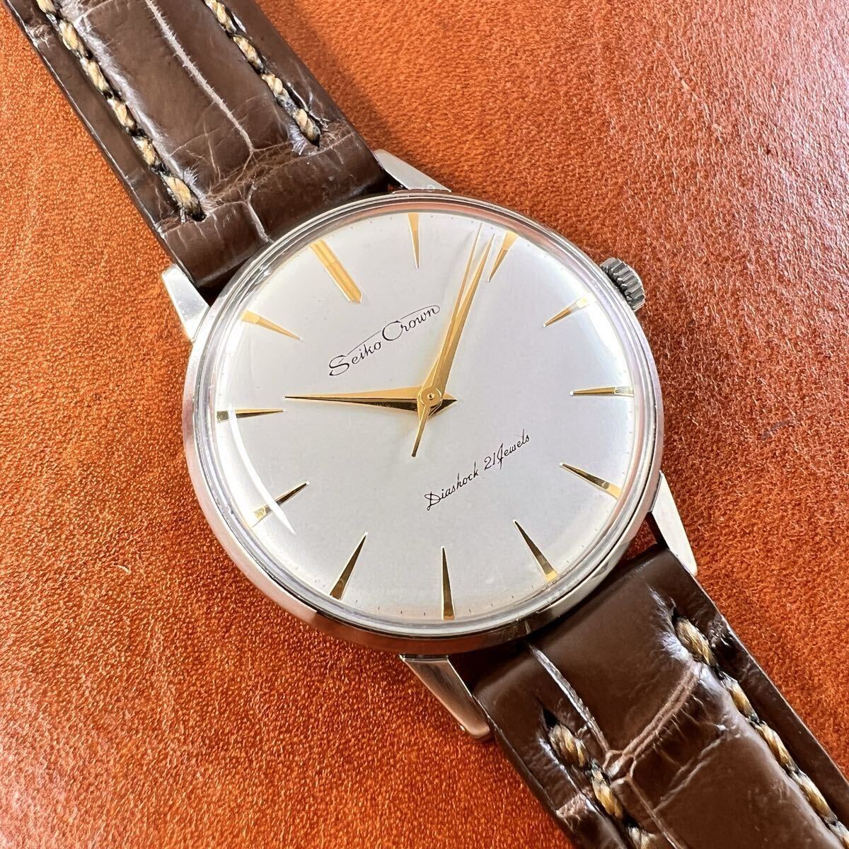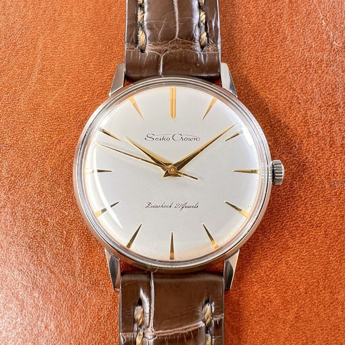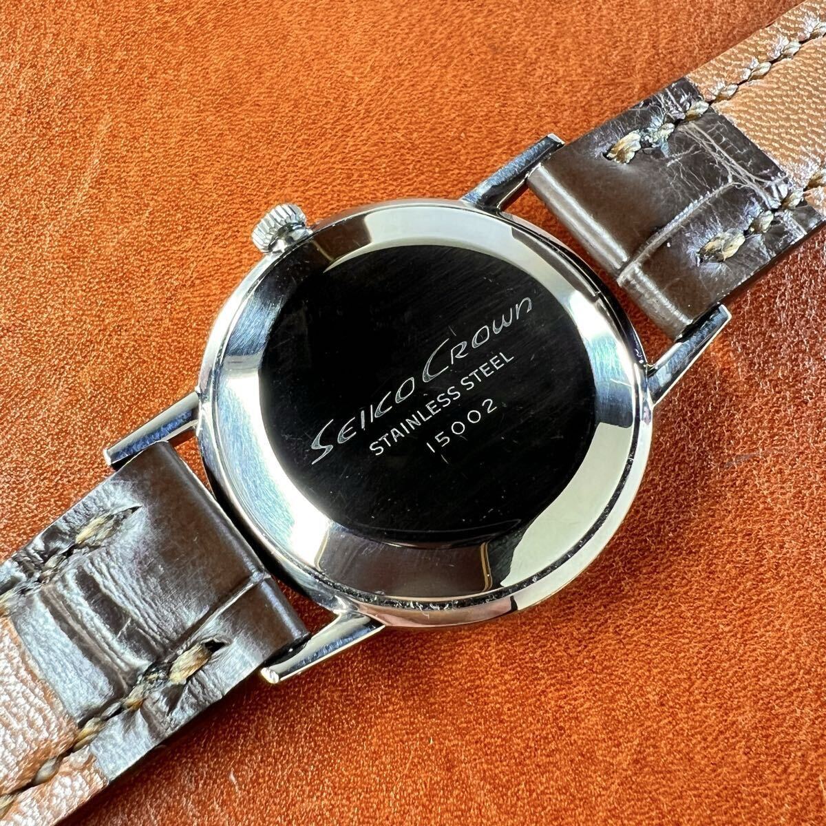 OH済! 極上美品! SEIKO Crown 21石 クロコダイル本革手縫いベルト Dバックル付 セイコー クラウン 15002 SS 手巻き 国産 ビンテージ 腕時計