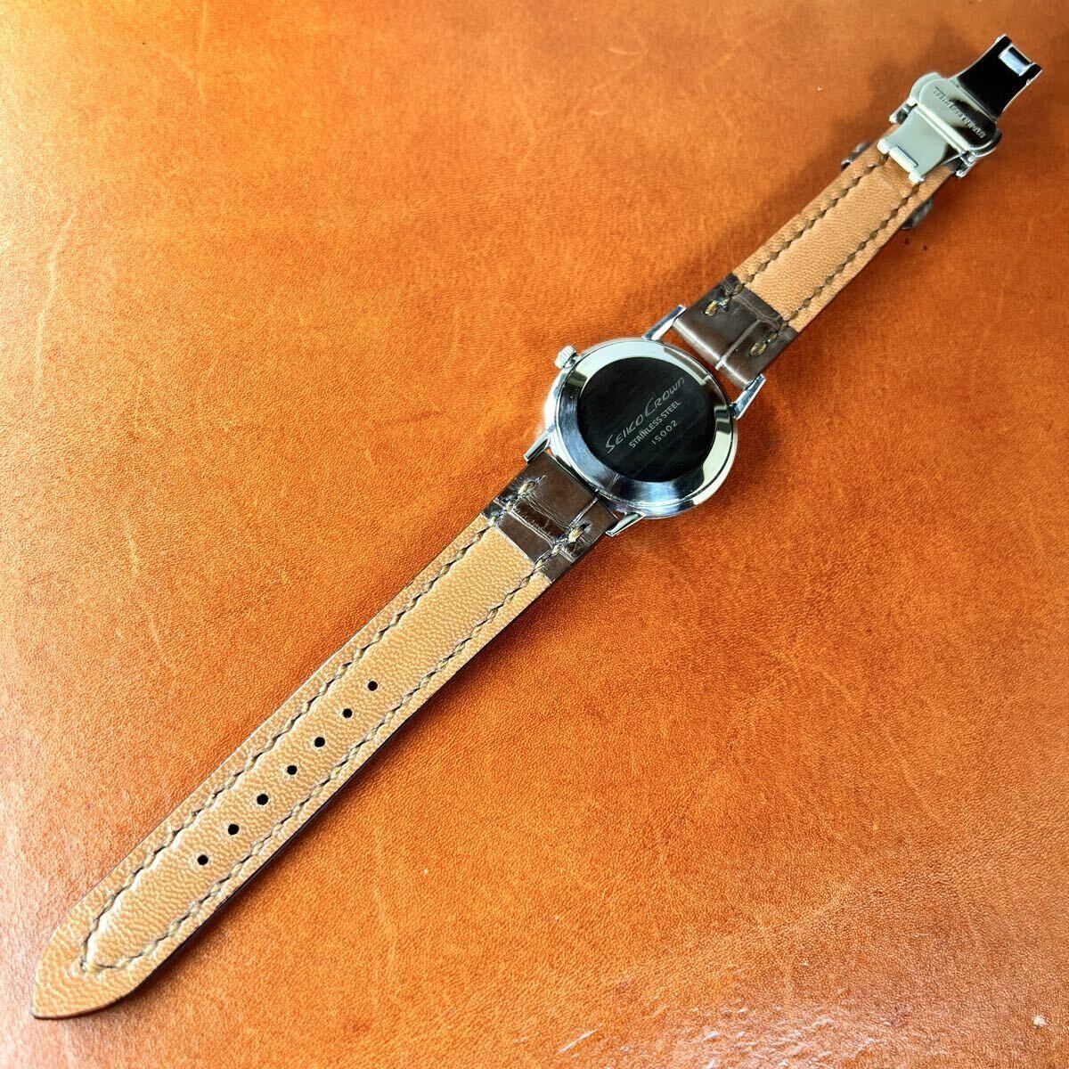 国産ヴィンテージ時計が好きで長年集めてきましたが、コレクション整理のため、自作のクロコダイル本革ベルトをつけて出品します。高価で中々手に入れにくいエキゾチックレザー本革の質の良さを感じていただければ幸いです。