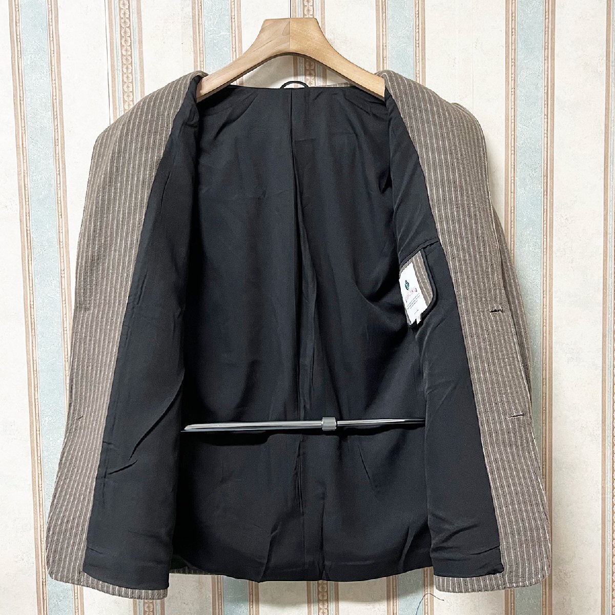 上品 定価7万 FRANKLIN MUSK・アメリカ・ニューヨーク発 テーラードジャケット カシミヤ100% ソフト ストライプ柄 ブレザー 通勤 サイズ3