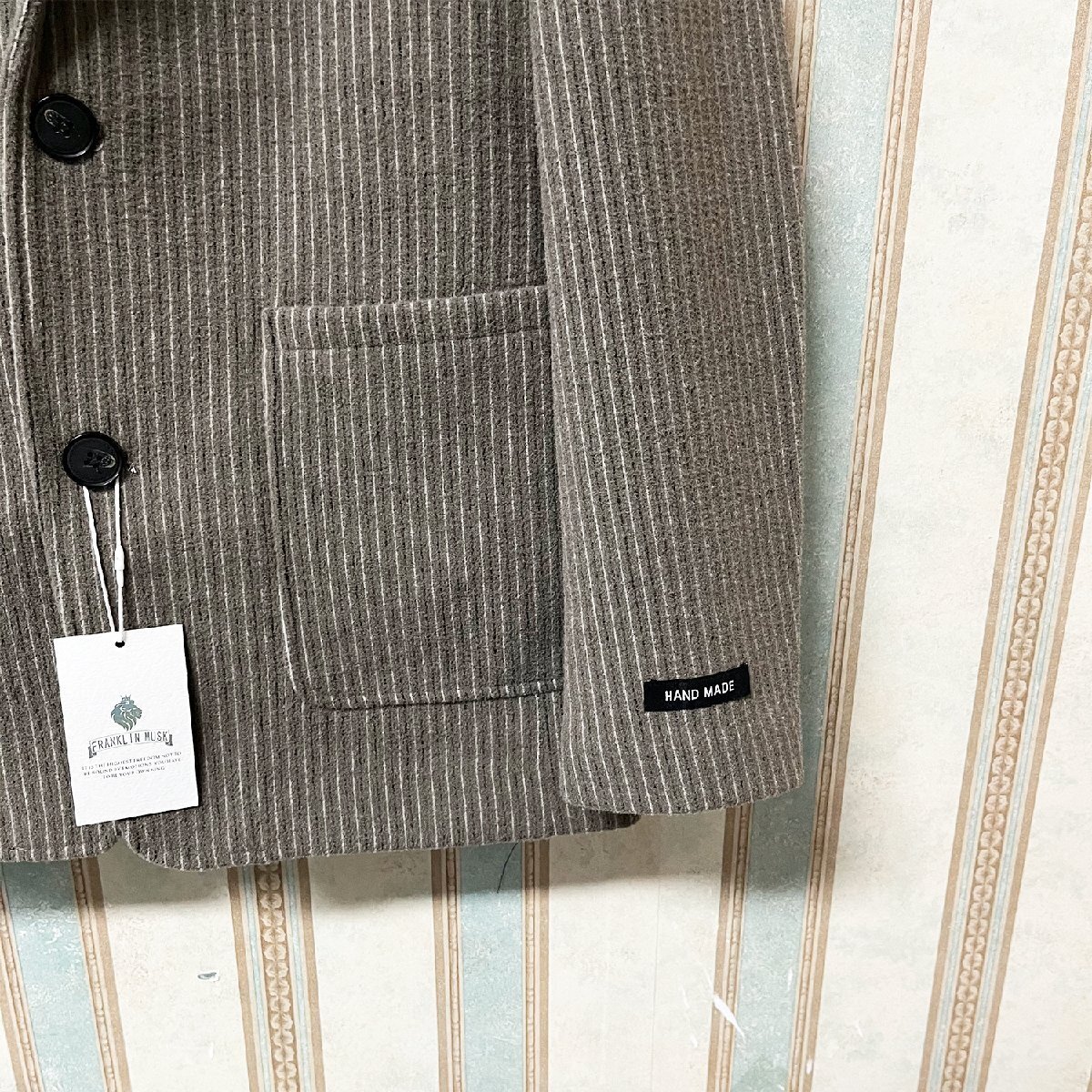 上品 定価7万 FRANKLIN MUSK・アメリカ・ニューヨーク発 テーラードジャケット カシミヤ100% ソフト 保温 ストライプ柄 ブレザー 通勤 サイズ3