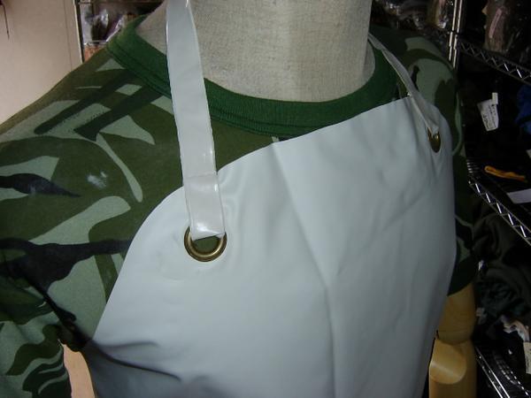 チェコ軍で水作業用に使用されていたPVC製エプロン。背丈の大きい東欧人用なので日本人には若干長めかも知れませんが、短いよりは良いと思います。170センチの方でぎりぎり地面に付かない程度です。簡単にハサミで切れますんで問題はないでしょう。色が白なので汚れがとても目立ちますので若干の保管時の汚れや若干の黄ばみなどあるものがありますがご了解ください。クロネコネコポス便200円でお送りいたします、落札価格にプラスでお願いいたします。