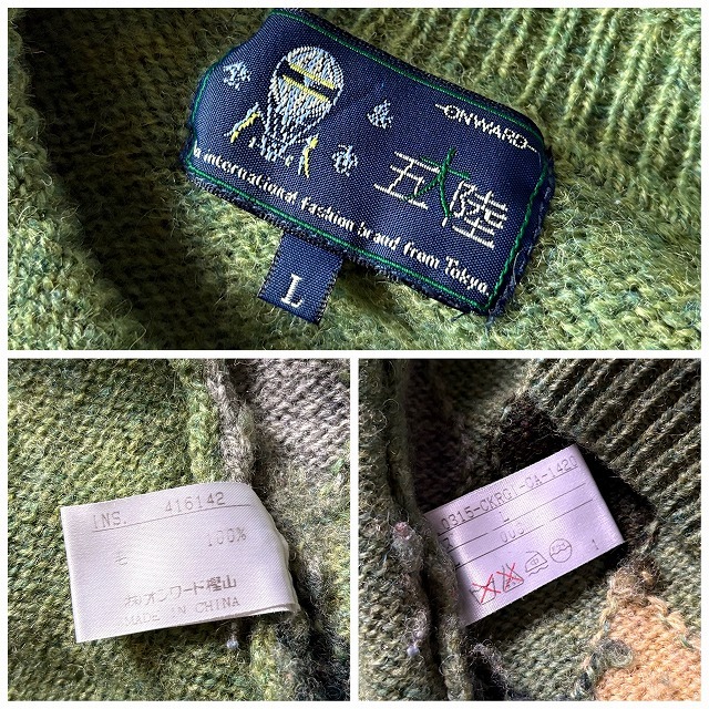 美品 五大陸 オンワード樫山 ウール100% ダイヤチェック柄 ロールネック プルオーバー ニット セーター アーガイル ミドルゲージ (L)r-925