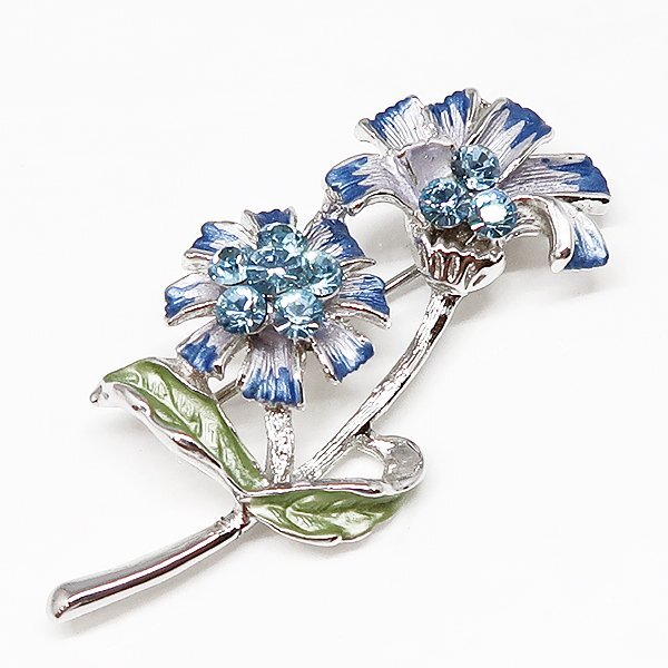 DKG★送料無料★ ヴィンテージ ブルー フラワー ラインストーン ブローチ 花 アンティークブローチ フラワーブローチ 267
