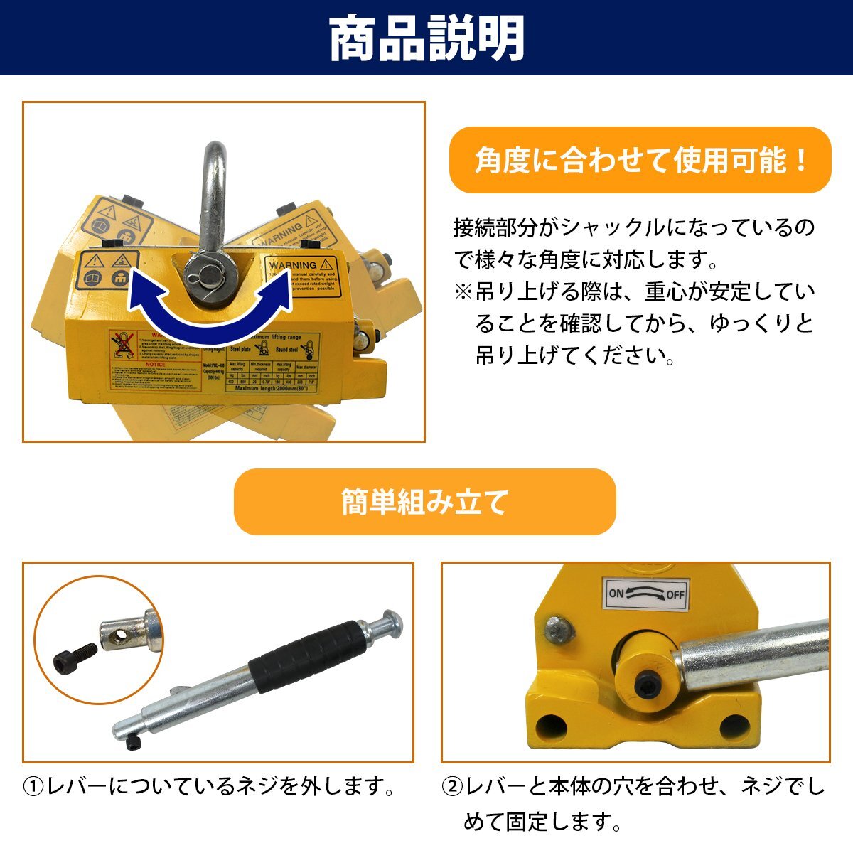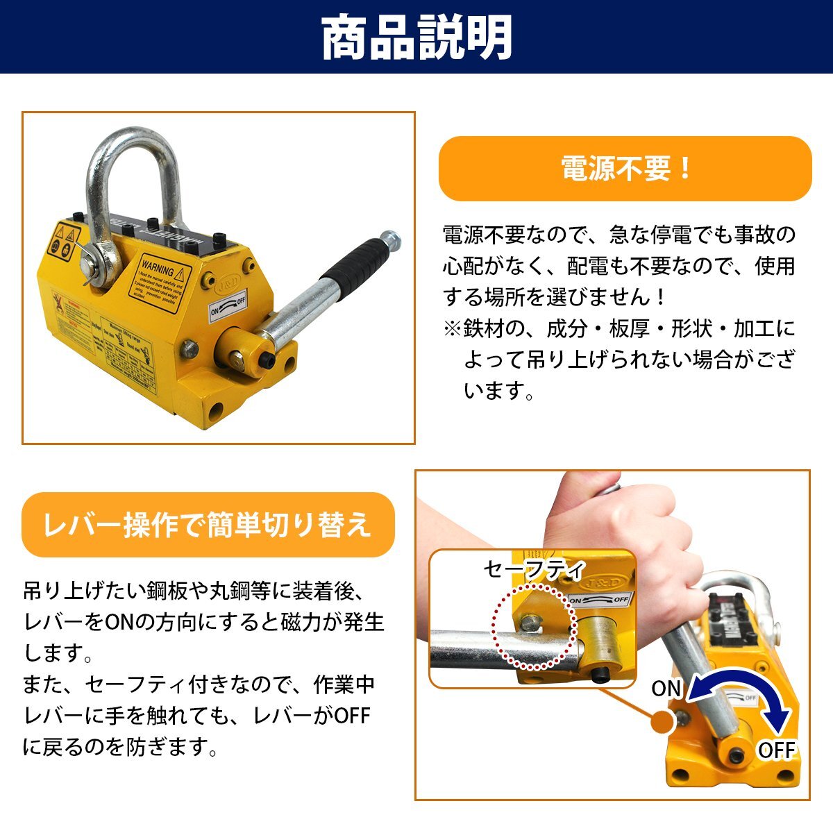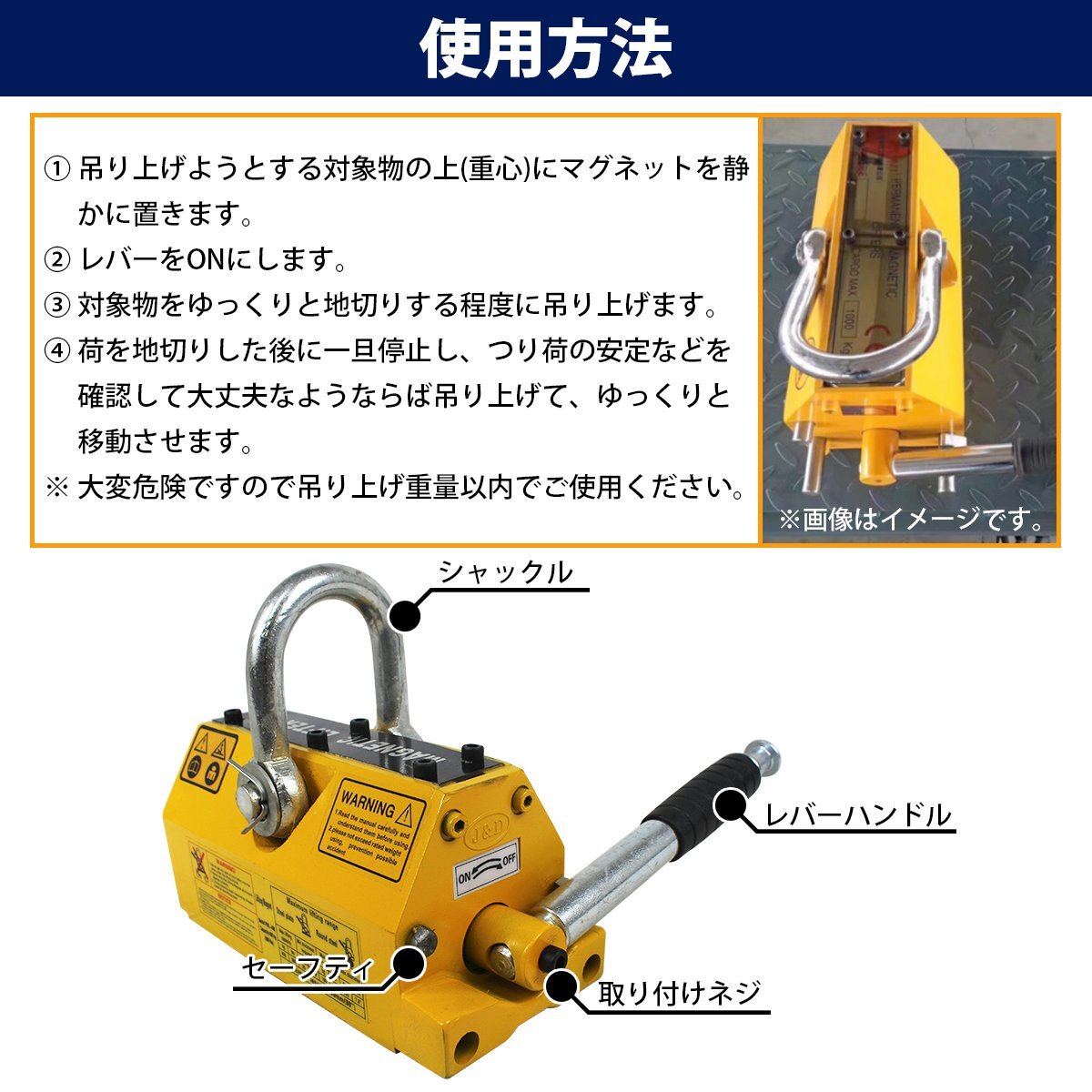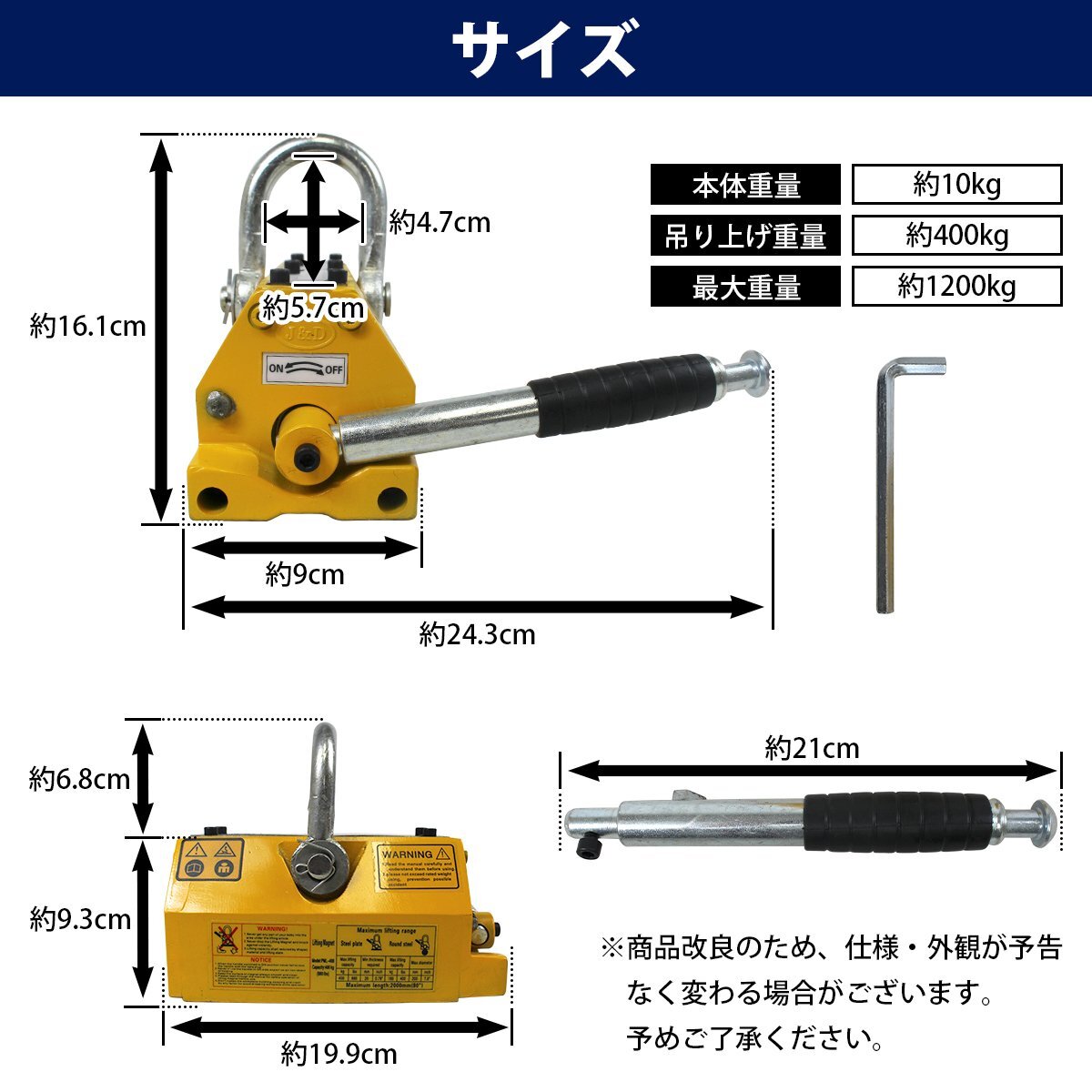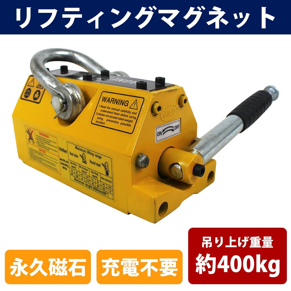 『400KG』永久磁石 リフティングマグネット リフマグ ON/OFFレバー式 マグネット ウインチ 鉄 鉄板 運搬 玉掛け 昇降 吊上げ