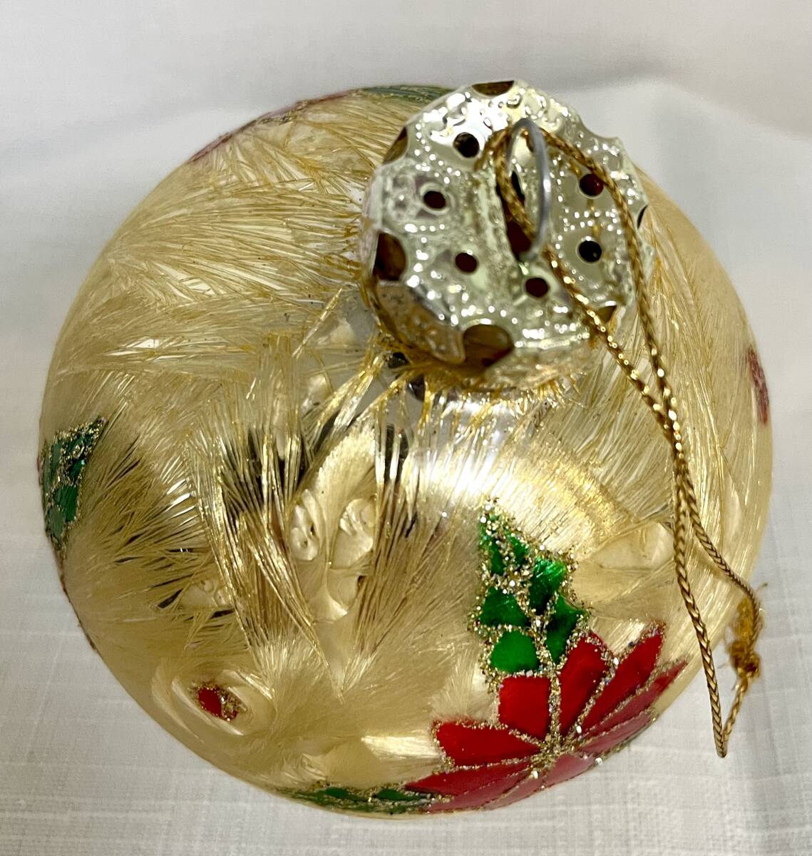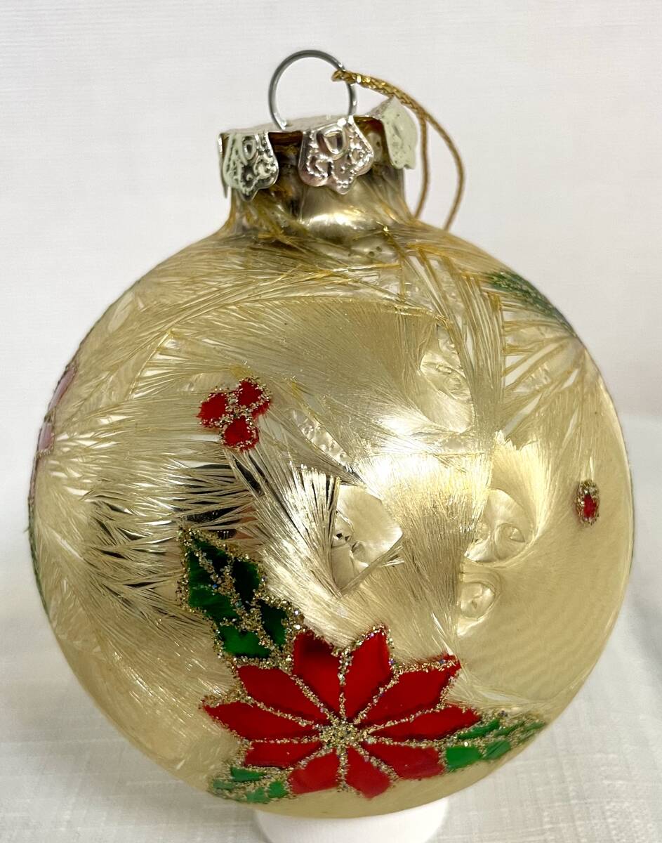 【極美品・輸入】Pier1 Imports 吹きガラス クリスマスオーナメント ポインセチア柄 手描きラメ装飾 ヴィンテージ ツリー飾り