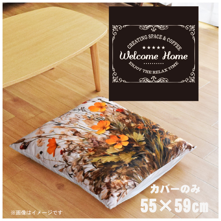 座布団 座布団カバー 約55×59cm カバーのみ 単品 北欧 洗える ファスナー付 リビング イラスト 転写プリント CSC-B064 文字 黒