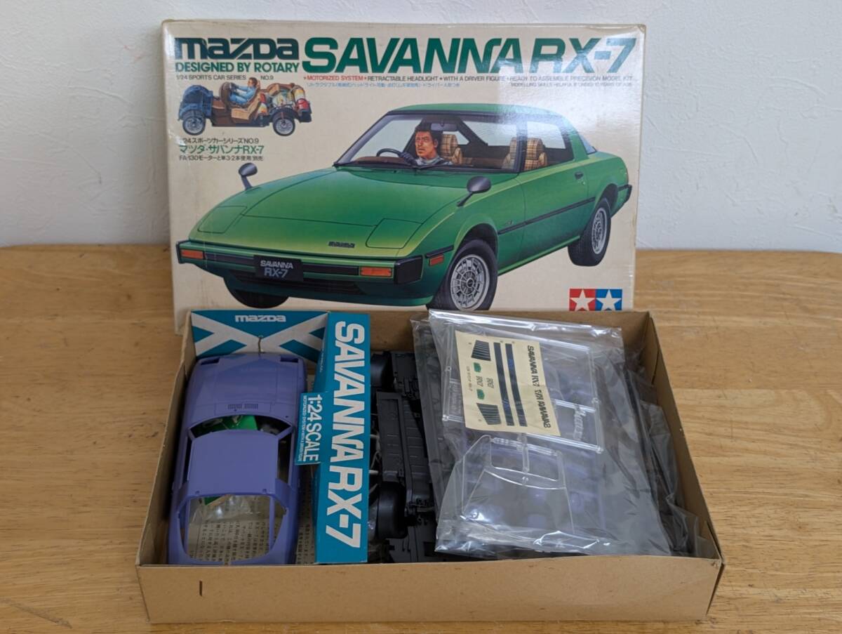 タミヤ1/24 マツダ サバンナ RX-7(パープルボディ) モ―タ―ライズです。箱は汚れ、へこみ、キズ があります。袋部品未開封です。タミヤのシリーズで成型色を変えて発売したのはこのキットのみでパープルボディは希少です。欠品があってもご容赦下さい。興味ある方いかがですか。