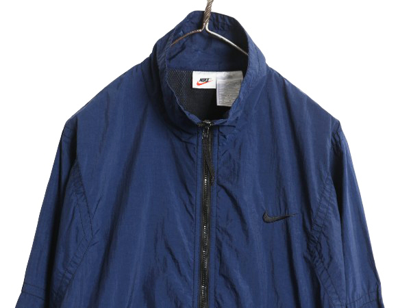 | 商品名 | 90s ナイキ フルジップ ナイロン トラック ジャケット メンズ M / オールド スウッシュ ウインドブレーカー ブルゾン ハイネック ネイビー |