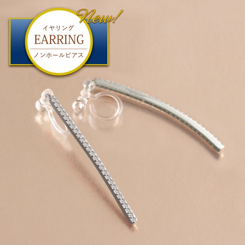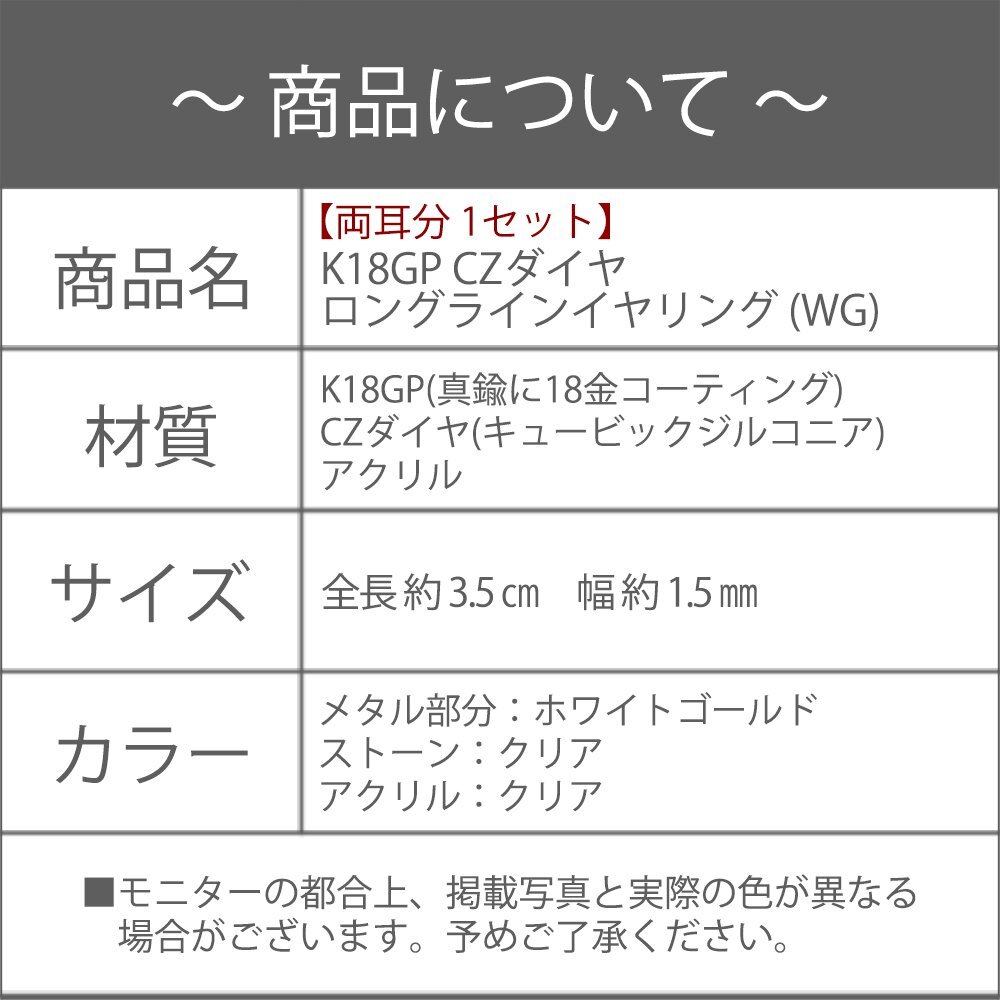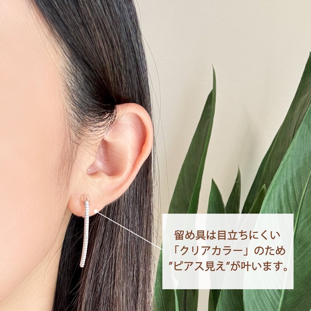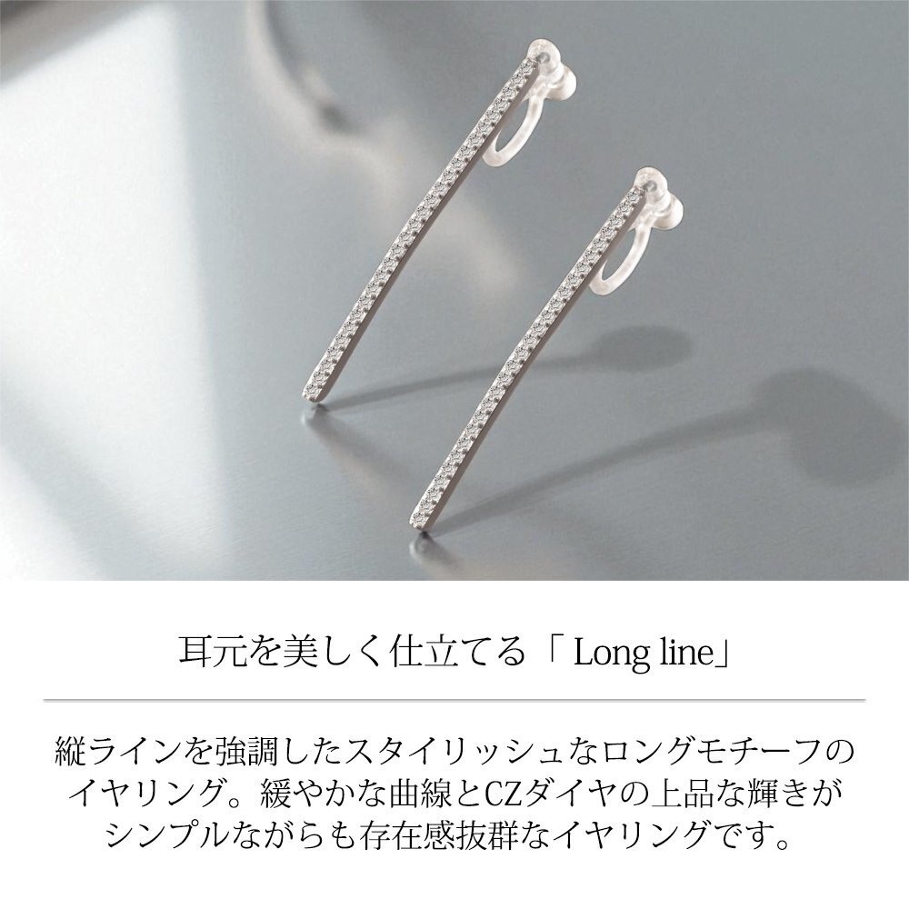 新品/イヤリング/K18GP/レディース/ロング/長い/シンプル/シルバー/18金/18kコーティング/ホワイトゴールド/樹脂/金属アレルギー/ダイヤ/CZ