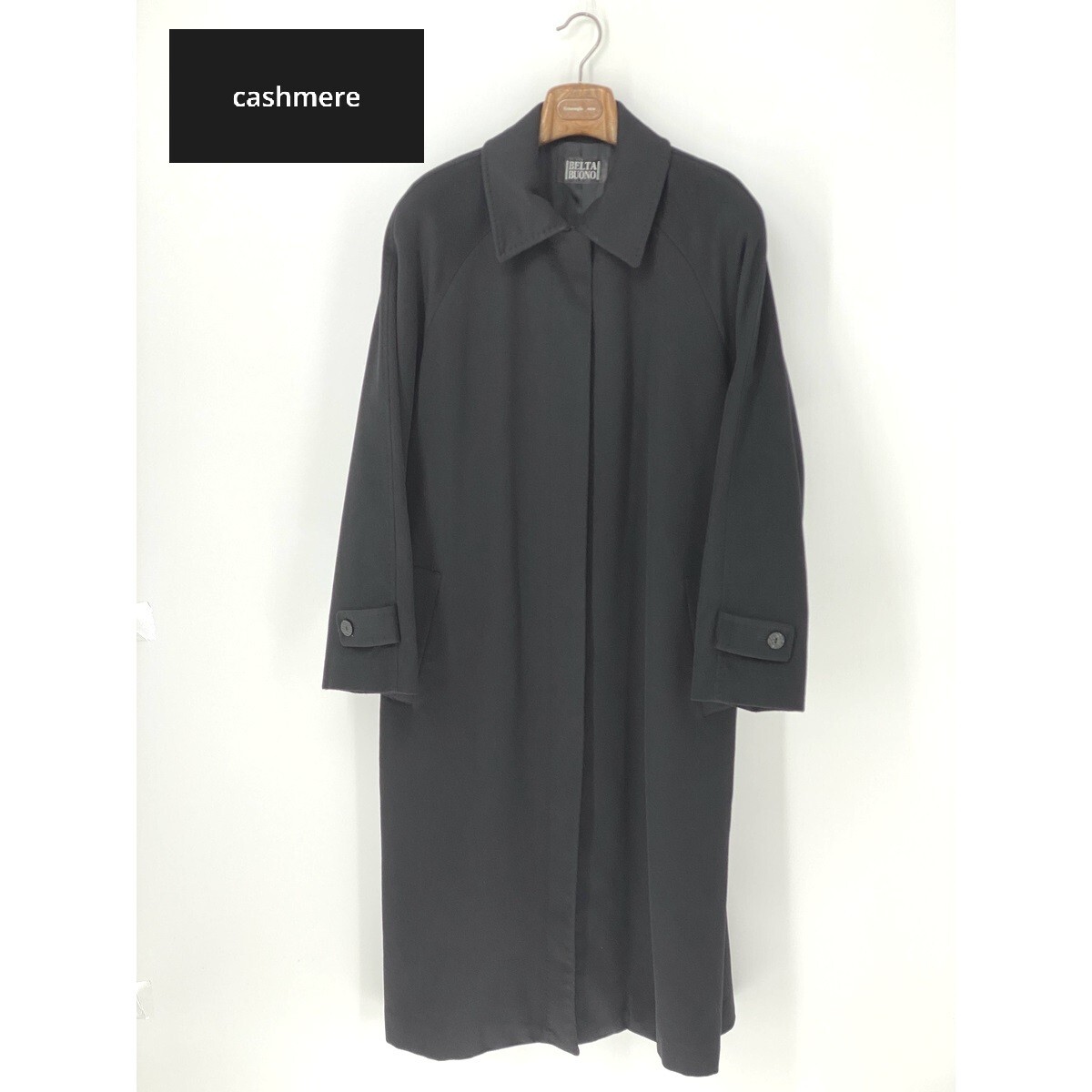 A9035/極美品 秋冬 BELTA BUONO ベルタボーノ カシミヤ100% 長袖 バルマカーン ロング ステンカラー コート 17AR L程 黒 レディース