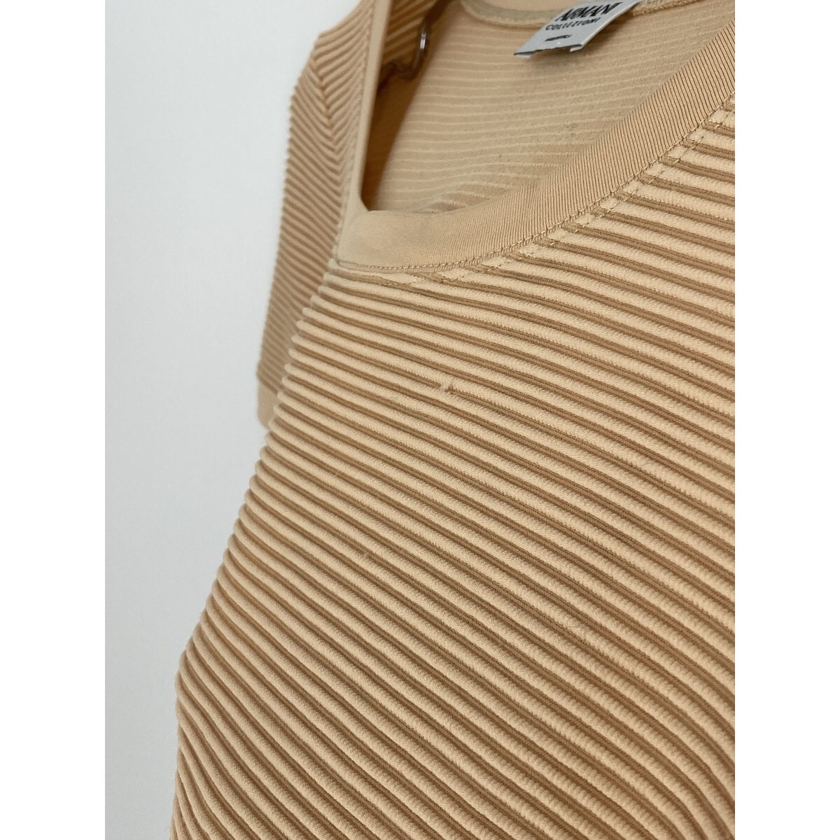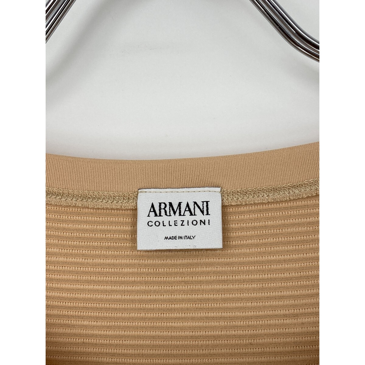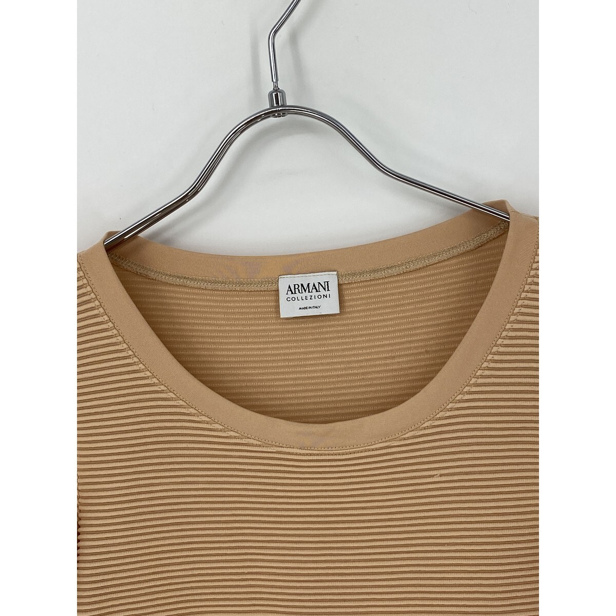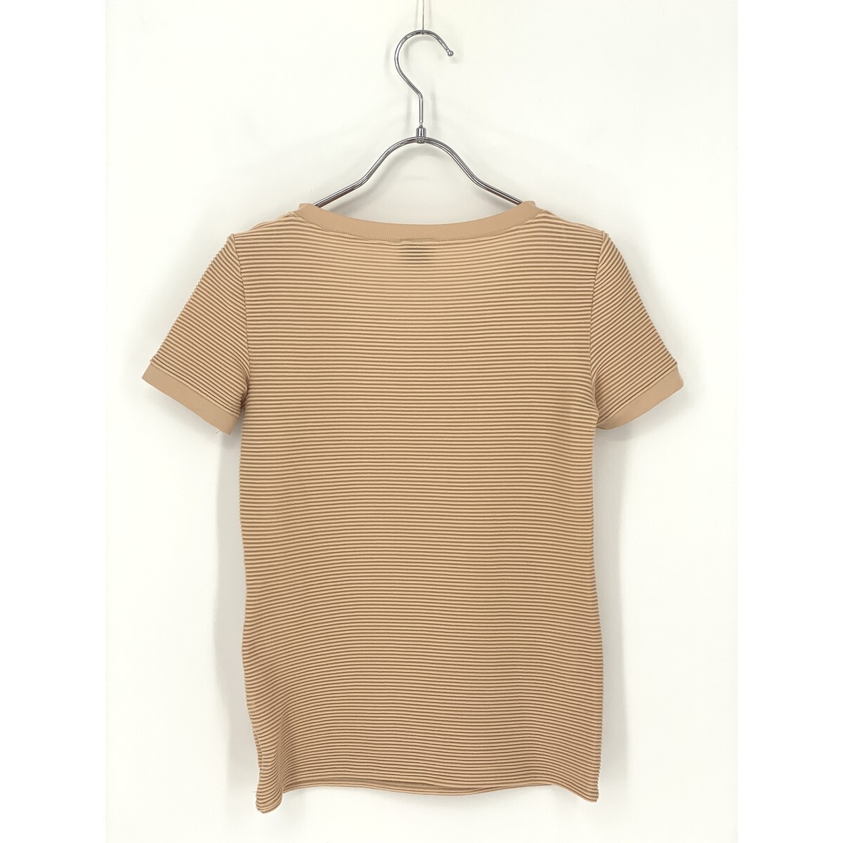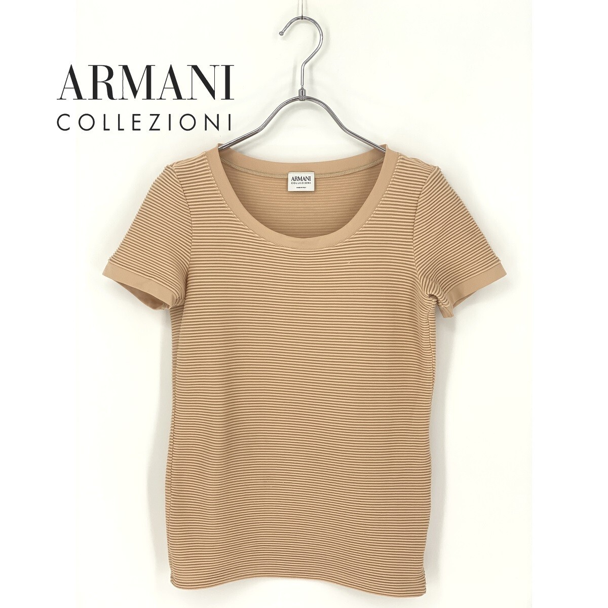 B0357/ ARMANI COLLEZIONI アルマーニコレッツォーニ ストレッチ ボーダー クルーネック 半袖 Tシャツ カットソー F ベージュ レディース