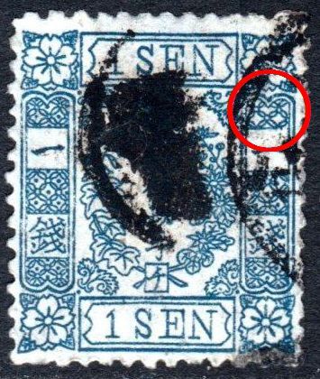 手彫切手 洋桜1銭チ 右上パネル七宝点全落ち