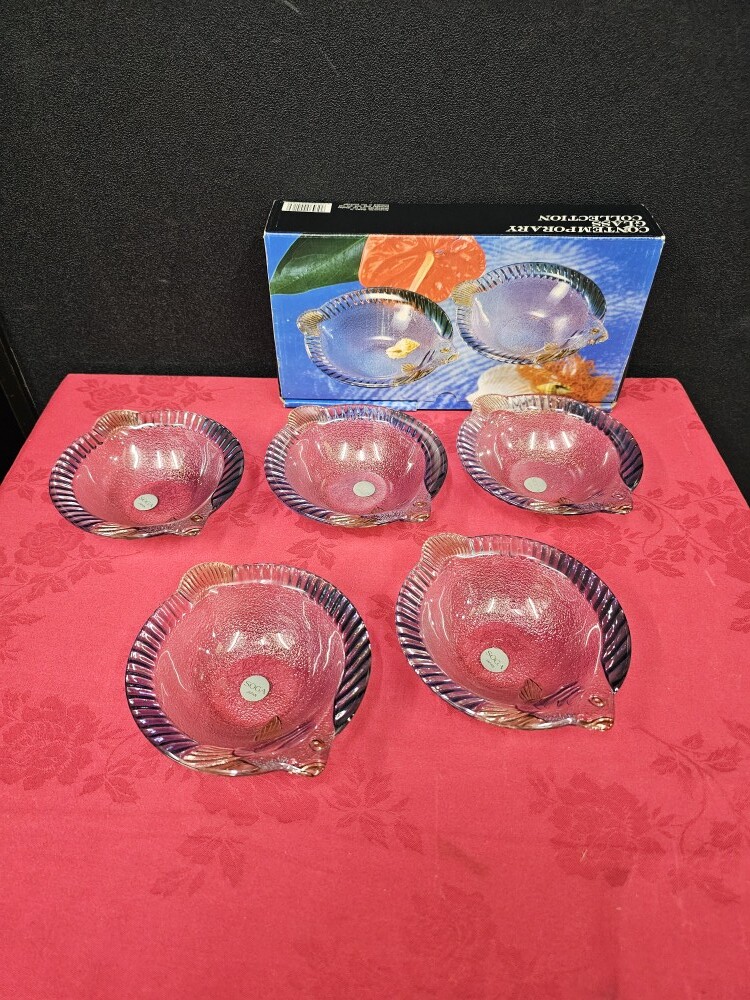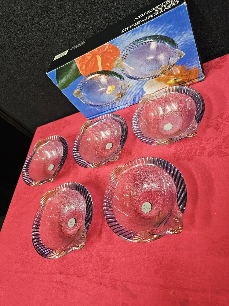 未使用 SOGA GLASS 曽我ガラス 魚形 ガラス皿 5枚セット 魚形ガラス皿 サイズ約17cm×14.5cm高さ4cm ekt5-22 | |||