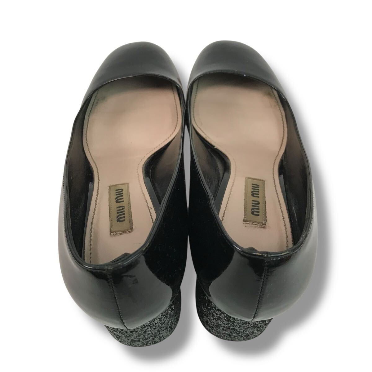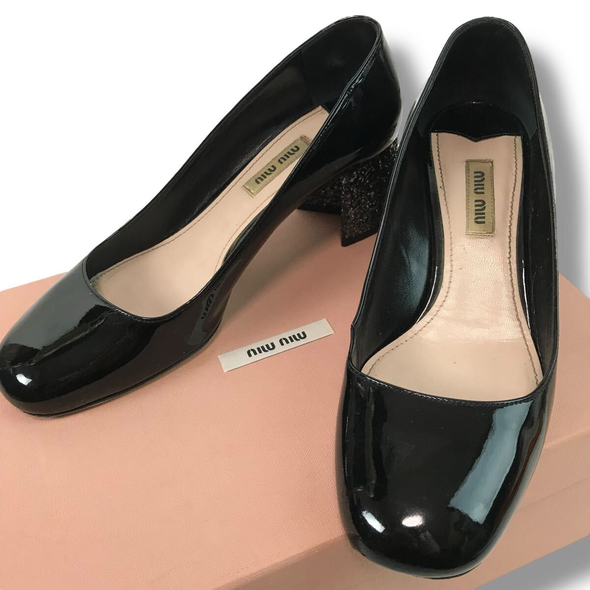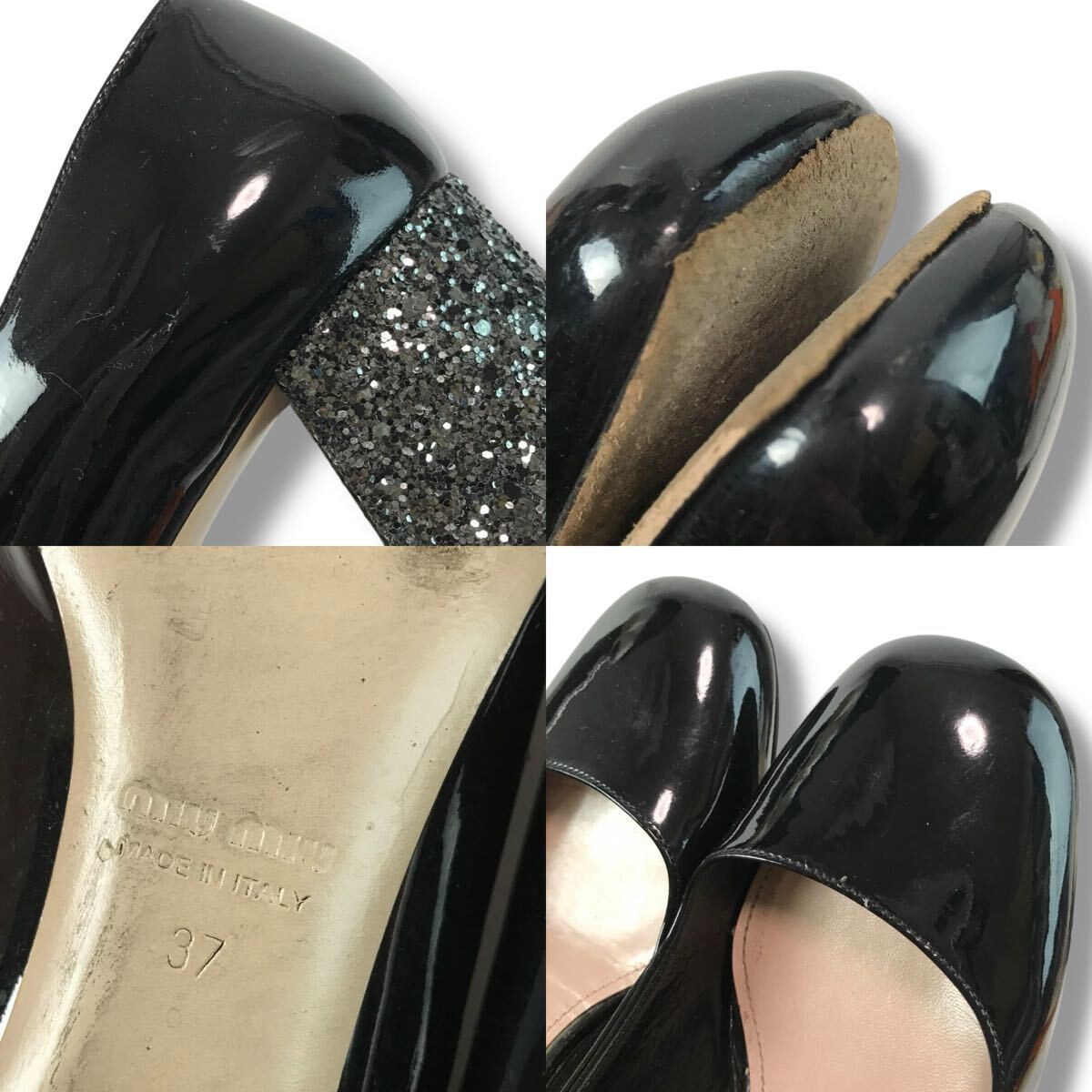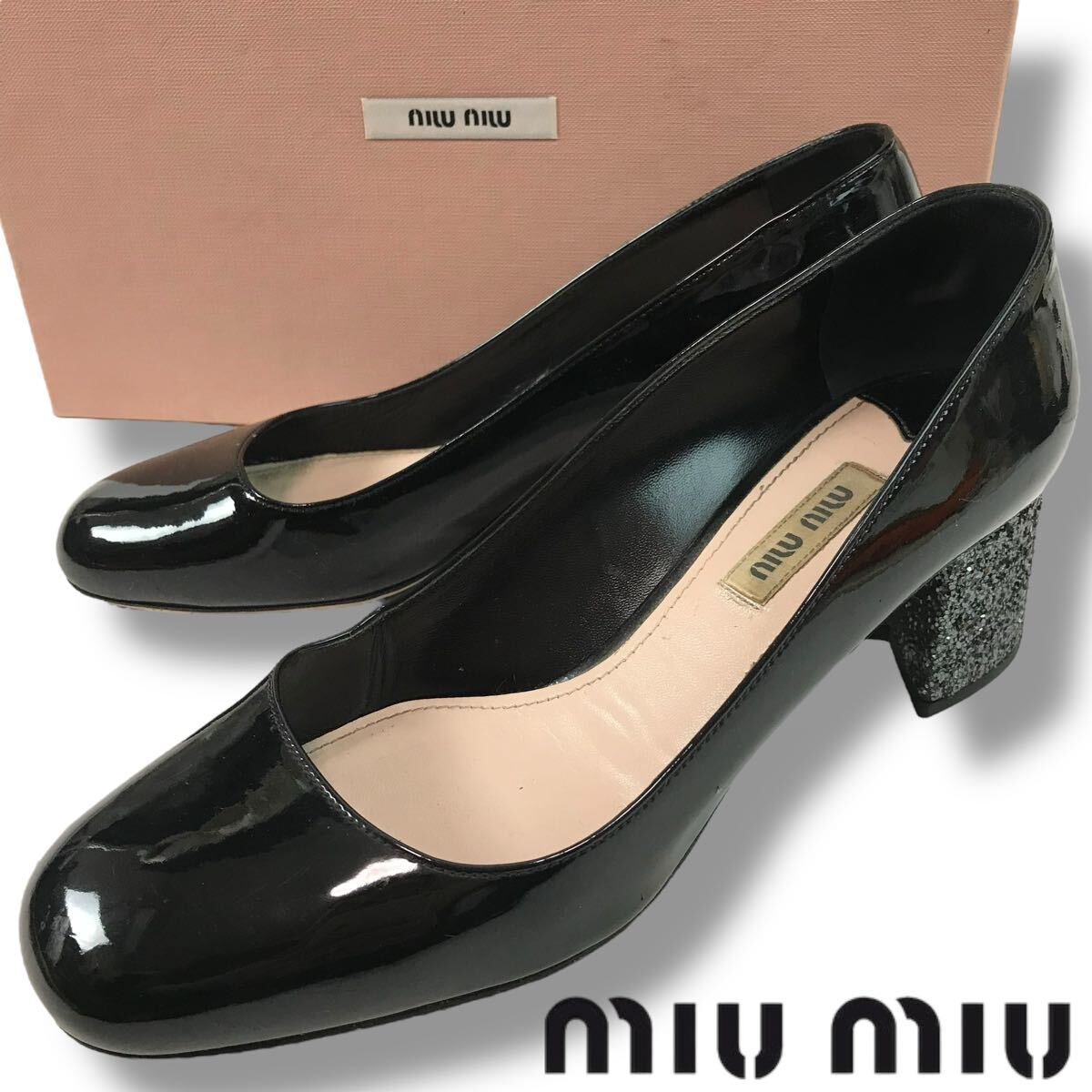 d23 miumiu ミュウミュウ エナメル パンプス パテントレザー グリッターラメ ブラック ハイヒール 37 フォーマル シューズ 正規品