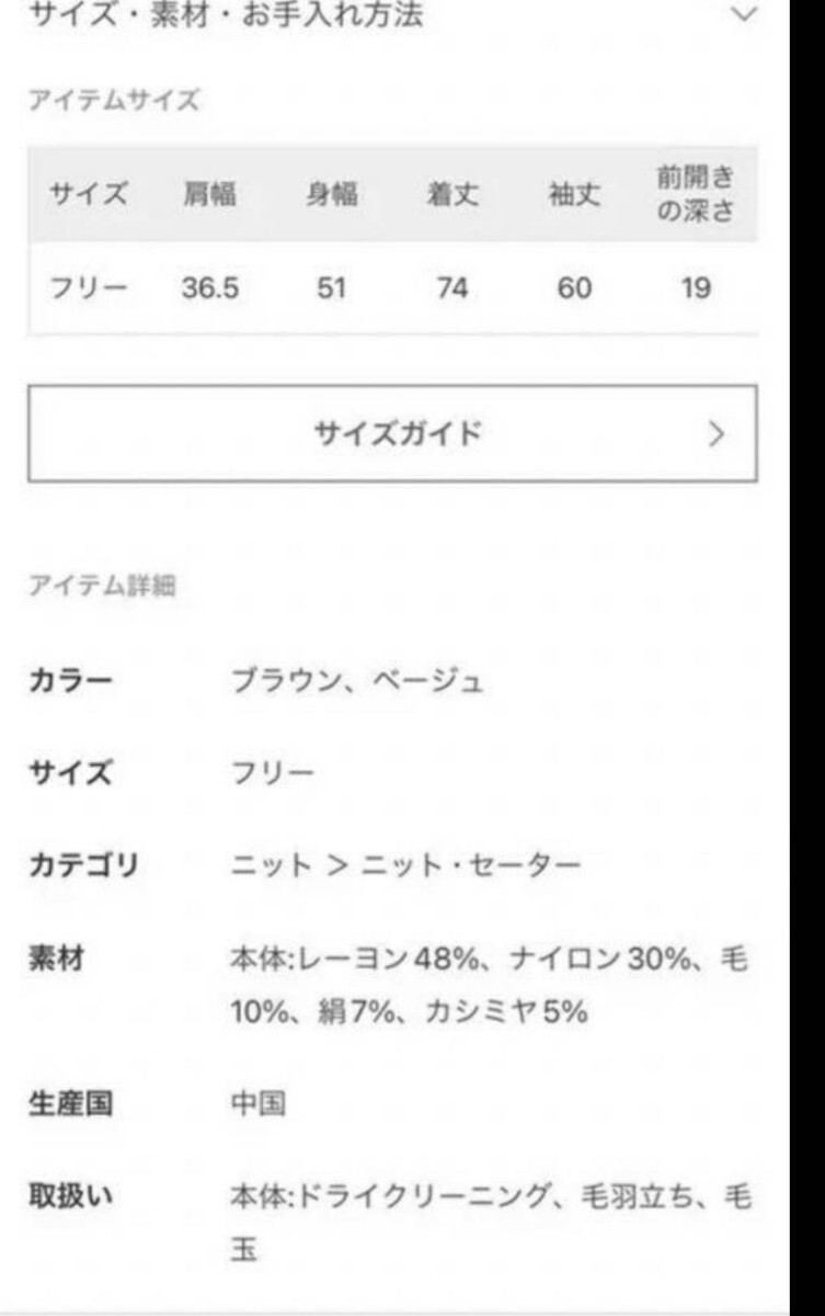素材:レーヨン48% ナイロン30% 毛10% 絹7% カシミヤ5%