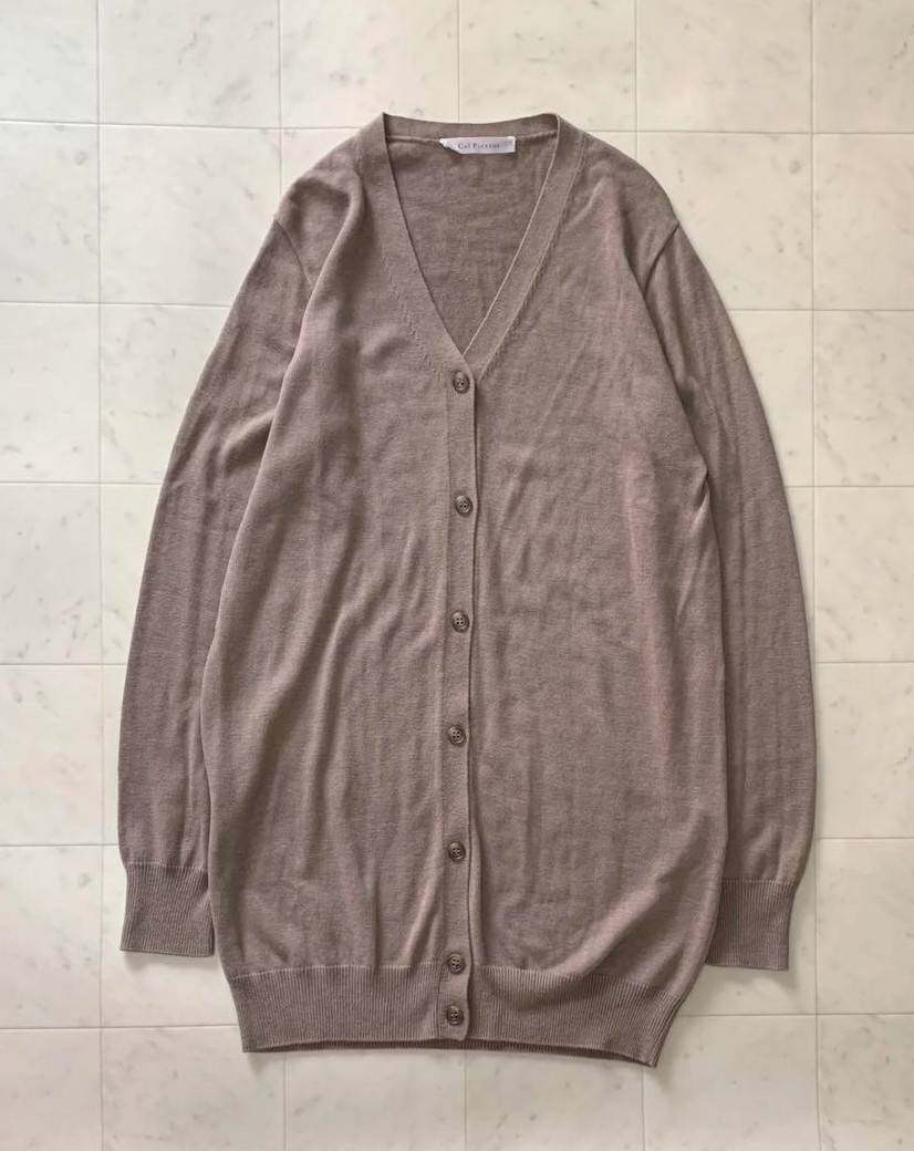 やや光沢のある、上品で素敵な個人的には一押しのカーディガンです。