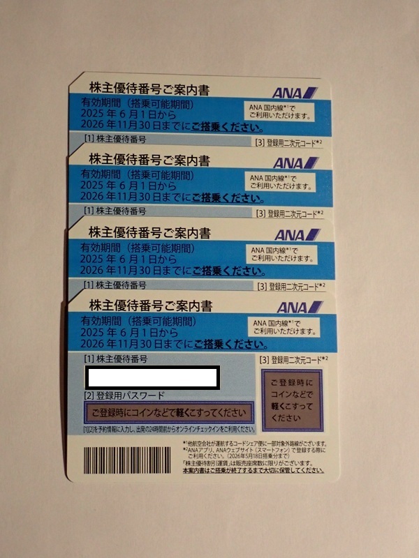 【ANA 全日空株主優待券 4枚】 2026年11月30日迄